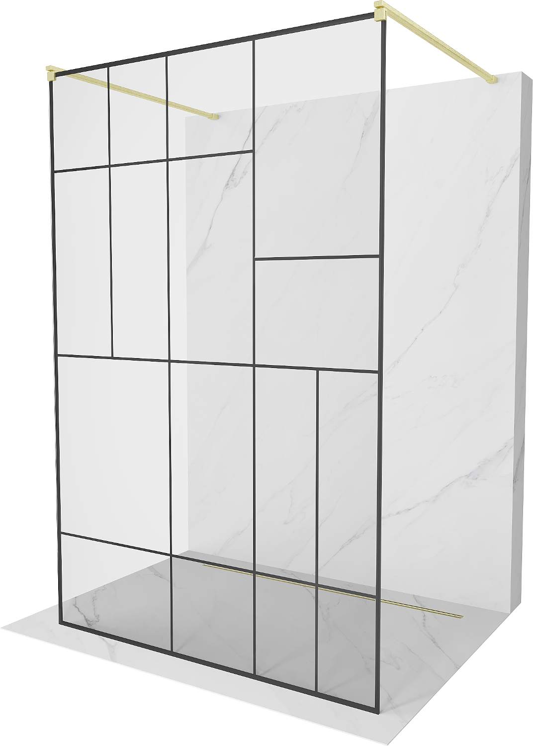 Mexen Kioto volně stojící sprchová stěna 140 x 200 cm, černý vzor 8 mm, zlatá kartáčovaná - 800-140-002-55-78