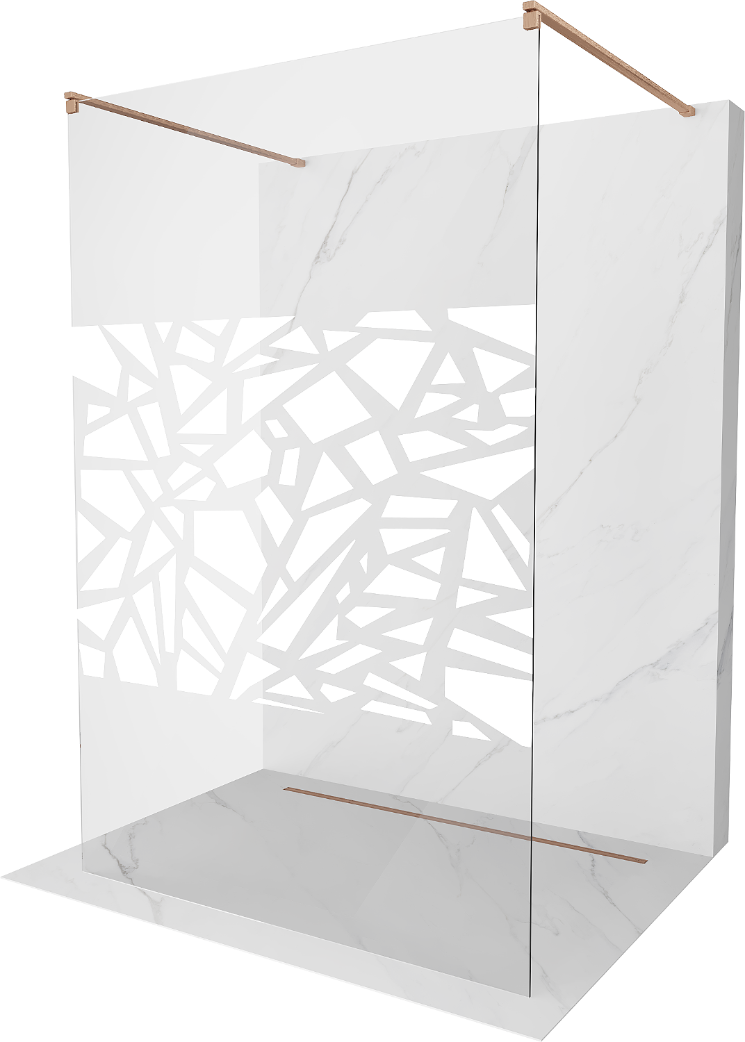 Mexen Kioto samostatně stojící sprchová stěna 140 x 200 cm, bílý vzor 8 mm, kartáčovaná měď - 800-140-002-65-85