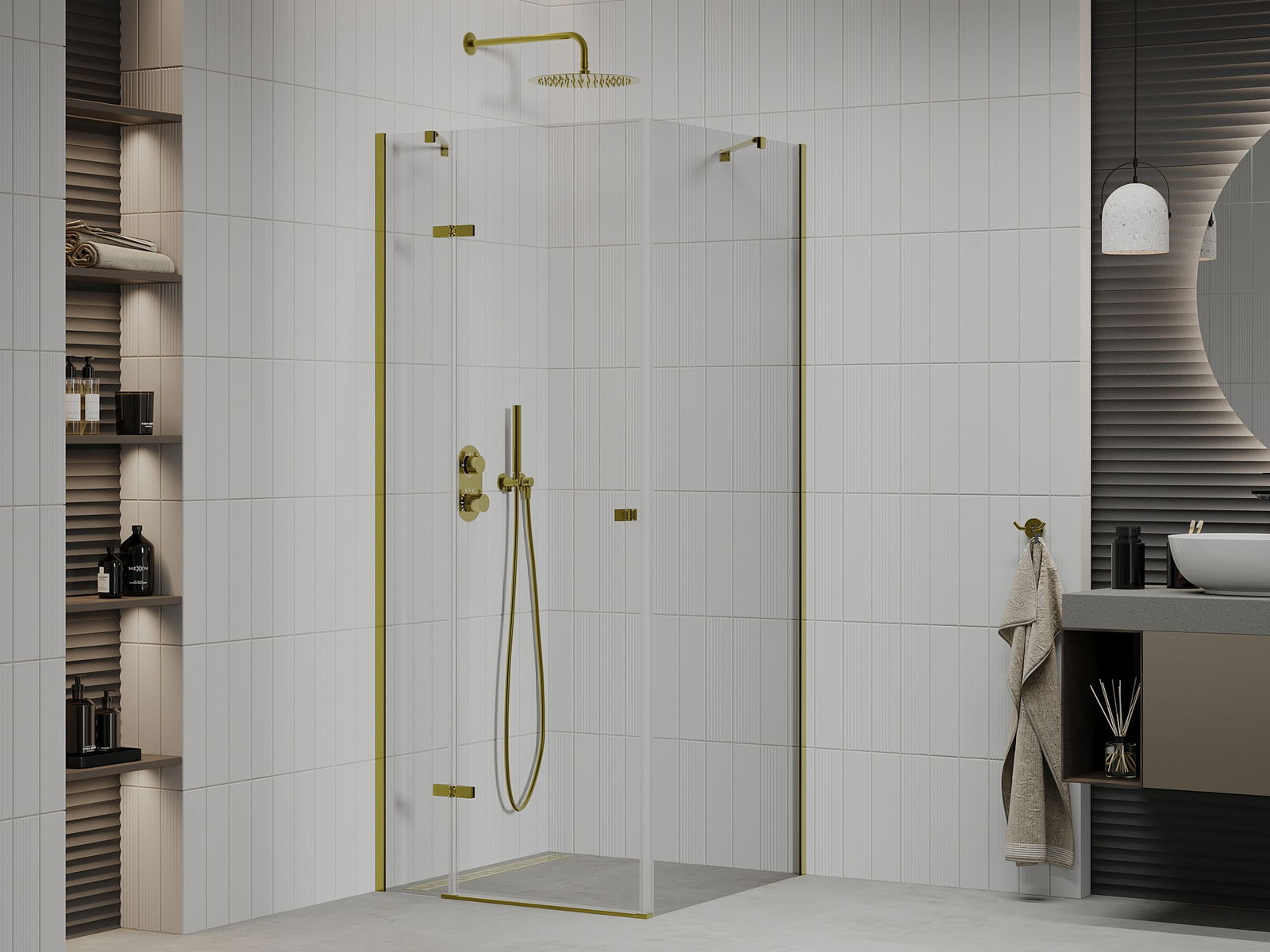 Mexen Roma sprchový kout otevírací 70 x 70 cm, průhledný, zlatý - 854-070-070-50-00