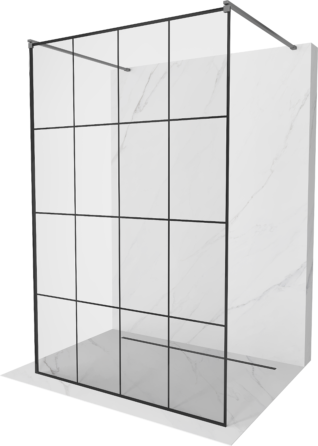 Mexen Kioto volně stojící sprchová stěna 150 x 200 cm, černá mřížka 8 mm, gun metal - 800-150-002-95-77