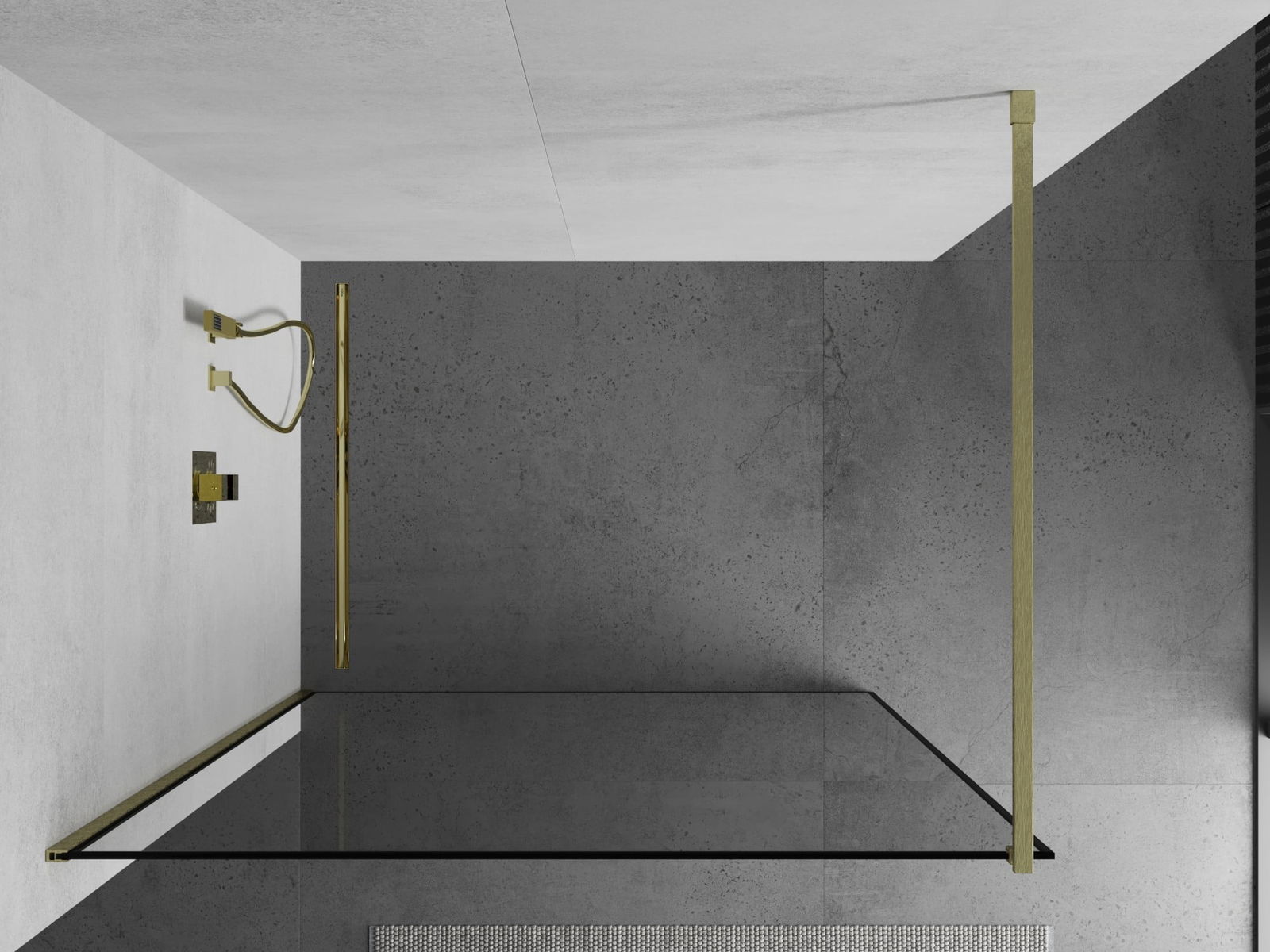 Mexen Kioto sprchová stěna Walk-in 60 x 200 cm, černý rámeček 8 mm, zlatý kartáčovaný - 800-060-101-55-70