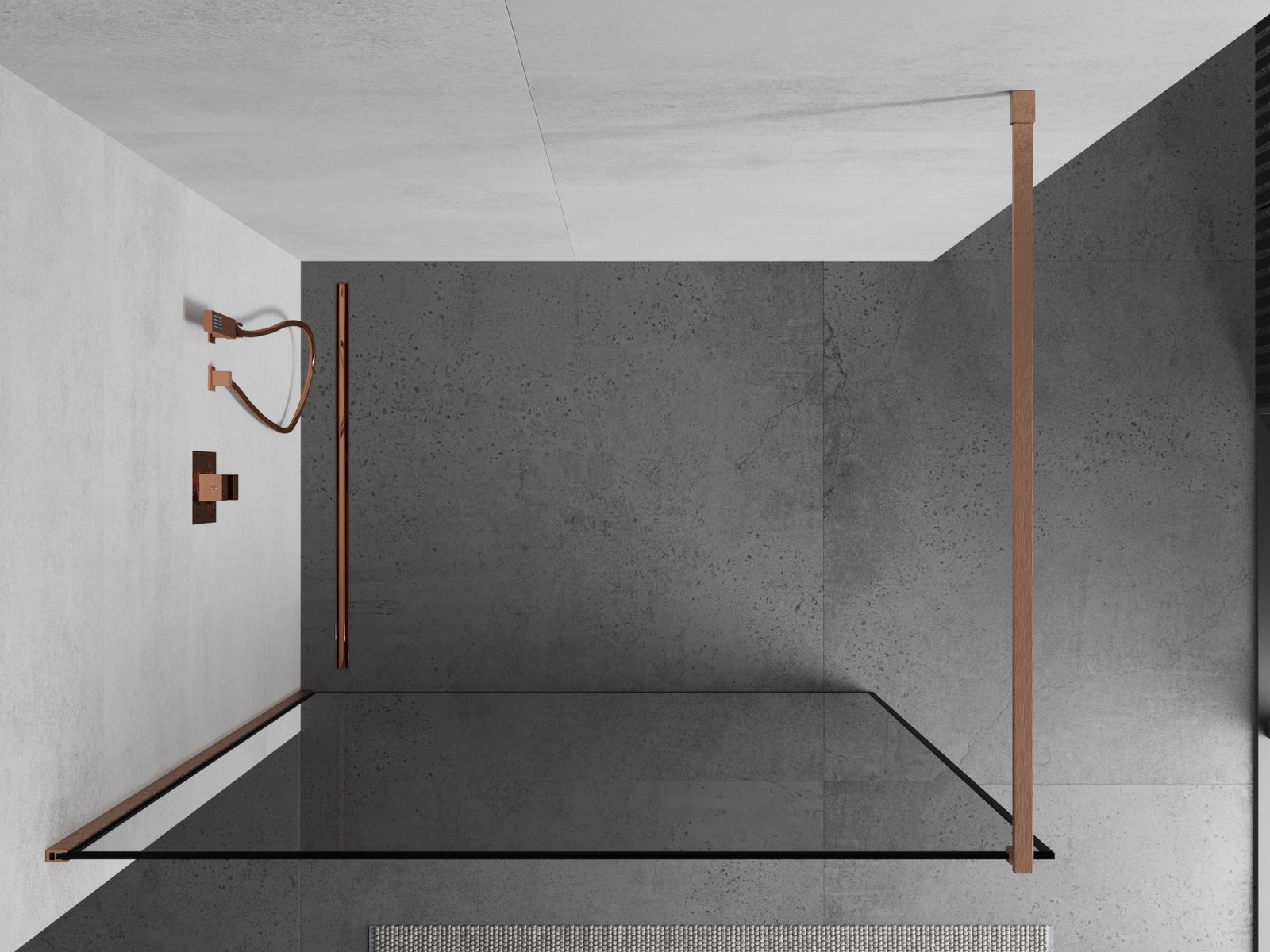 Mexen Kioto sprchová stěna Walk-in 50 x 200 cm, černý rám 8 mm, kartáčovaná měď - 800-050-101-65-70