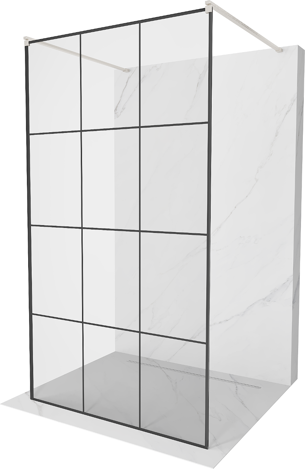 Mexen Kioto samostatně stojící sprchová stěna 120 x 200 cm, černá mřížka 8 mm, kartáčovaný nikl - 800-120-002-97-77