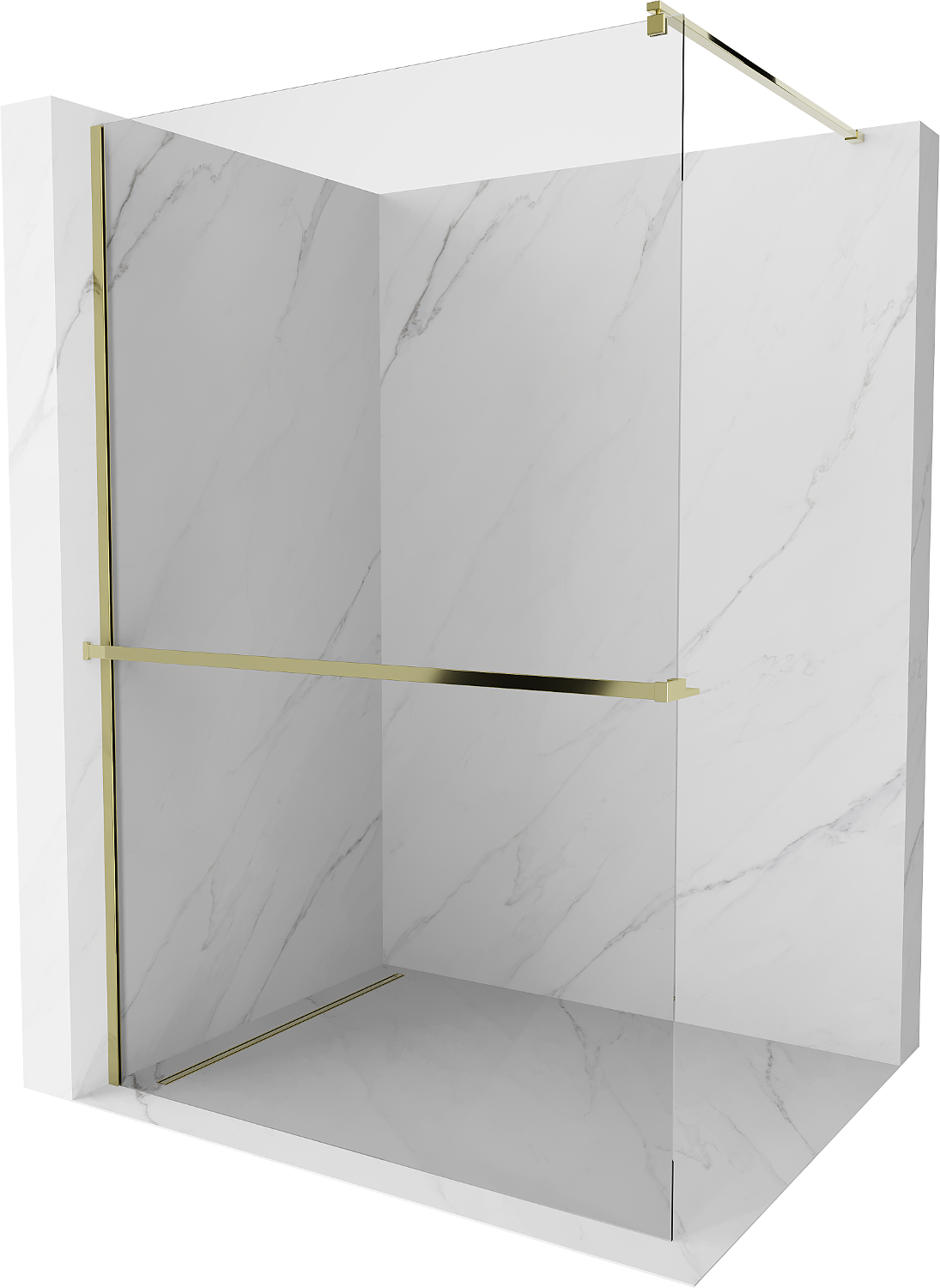 Mexen Kioto+ sprchová stěna s poličkou Walk-in 75 x 200 cm, transparentní, zlatá - 800-075-121-50-00