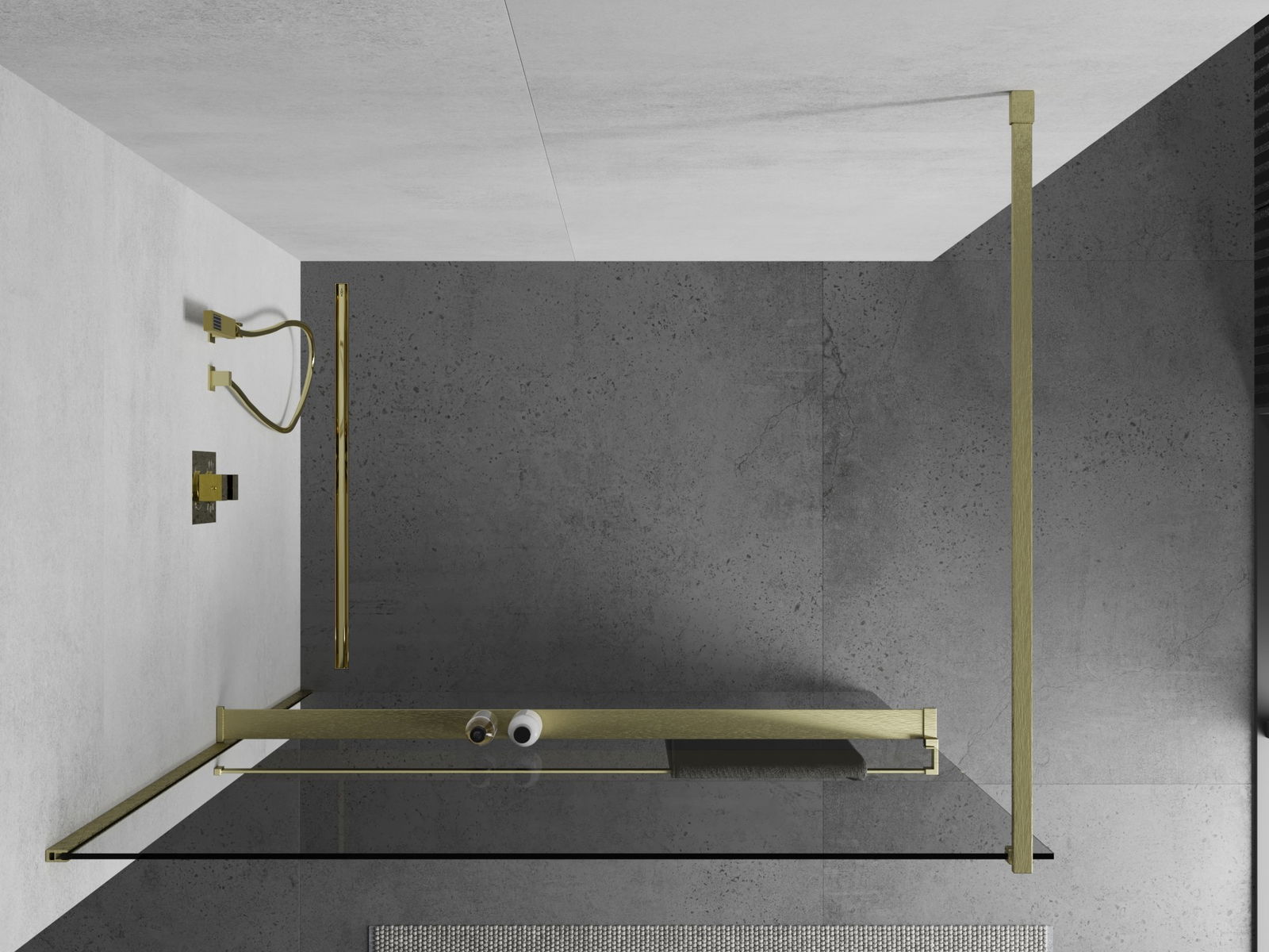 Mexen Kioto+ sprchová stěna s policí Walk-in 80 x 200 cm, transparentní, zlato kartáčované - 800-080-121-55-00