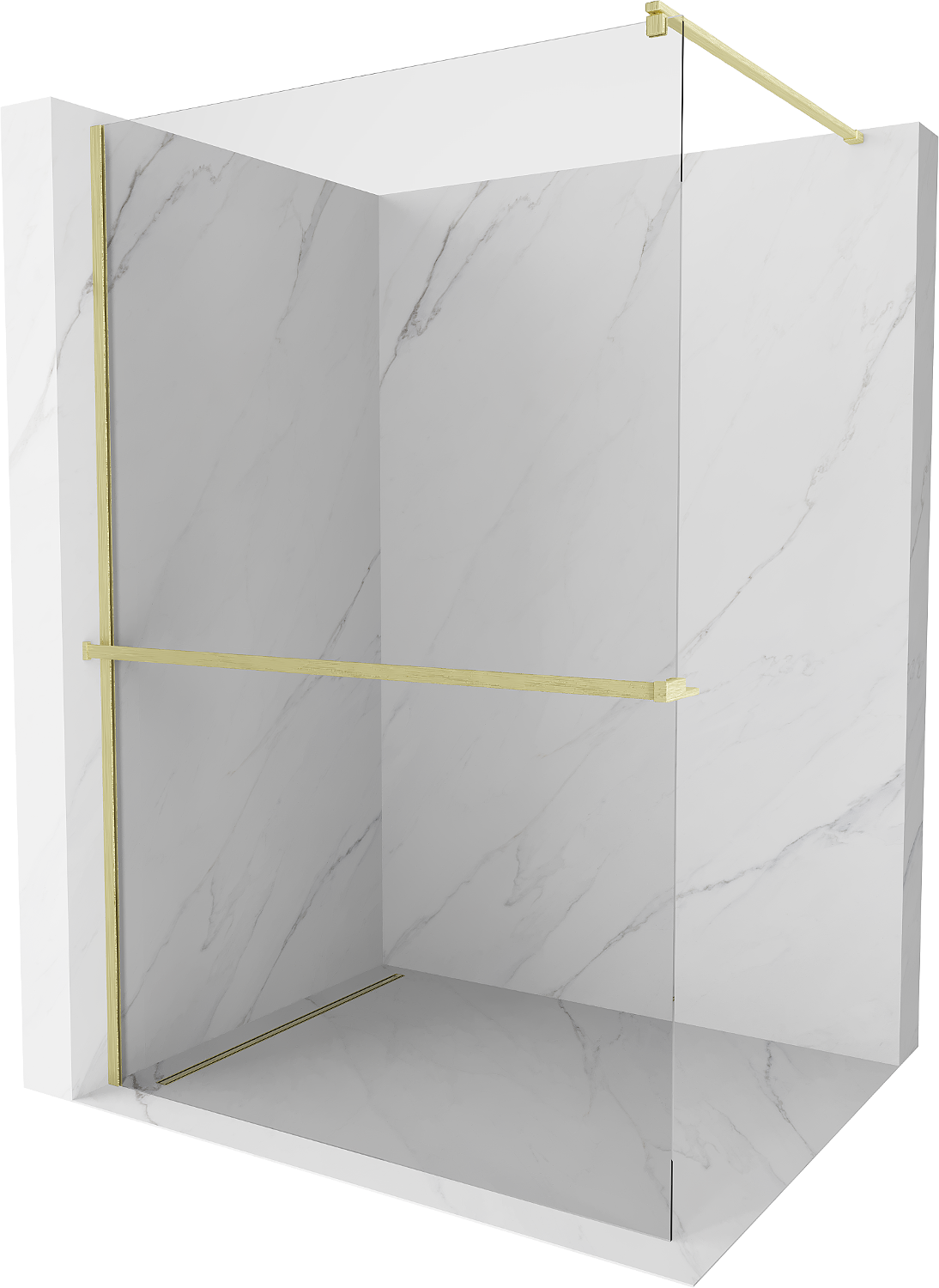 Mexen Kioto+ Sprchová stěna s policí Walk-in 105 x 200 cm, transparentní, zlatá kartáčovaná - 800-105-121-55-00