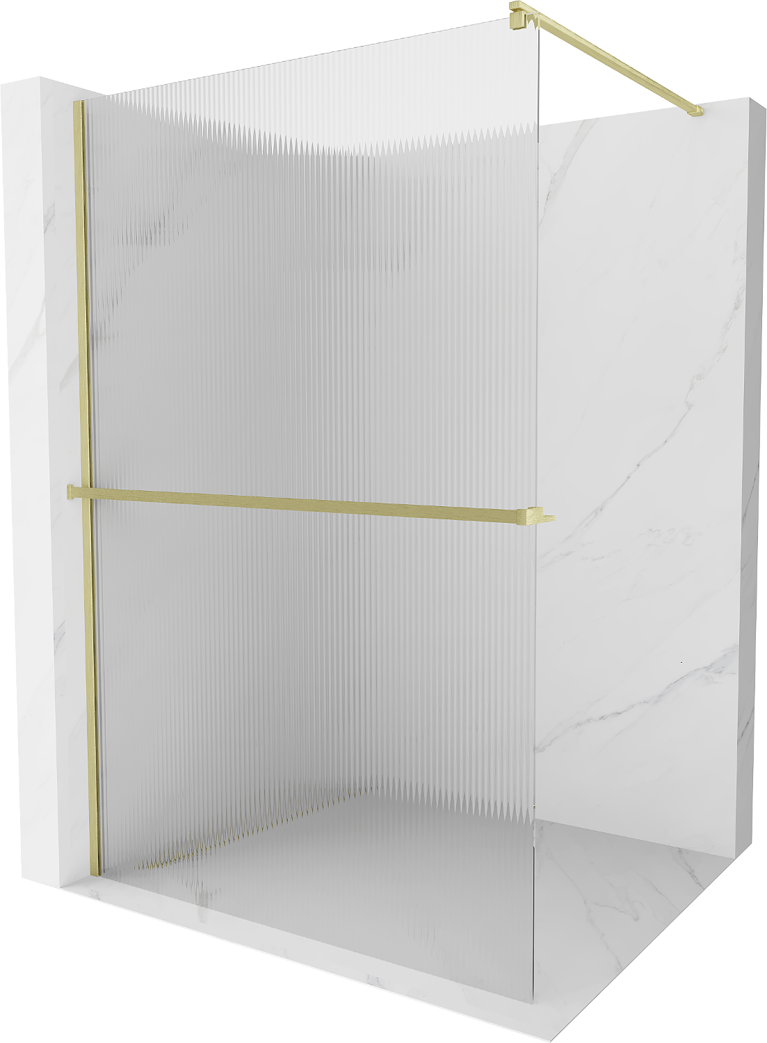 Mexen Kioto+ sprchová stěna s policí Walk-in 140 x 200 cm, pruhovaná, zlatá kartáčovaná - 800-140-121-55-09