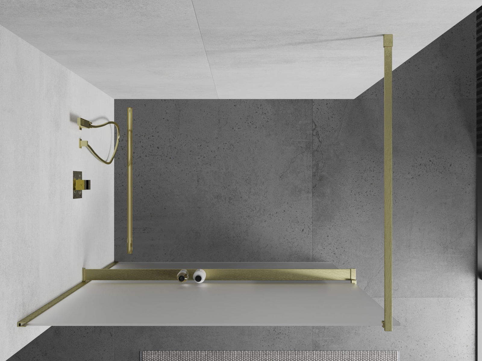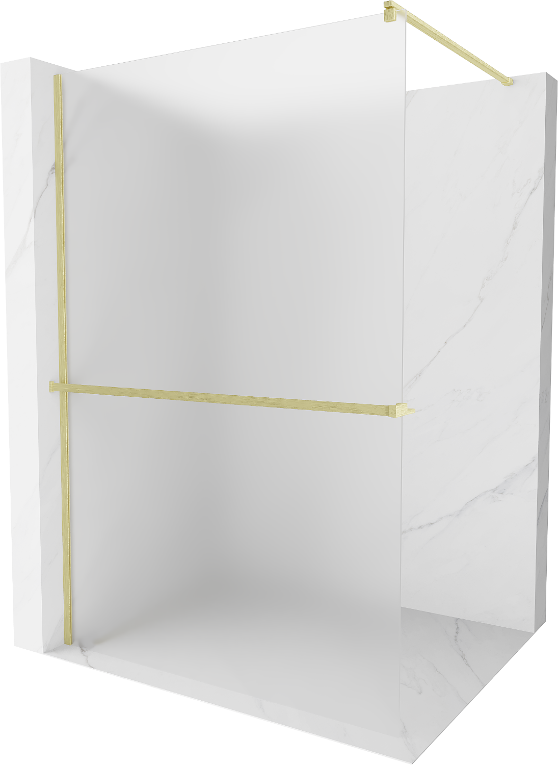 Mexen Kioto+ sprchová stěna s poličkou Walk-in 130 x 200 cm, mat, zlatá kartáčovaná - 800-130-121-55-30