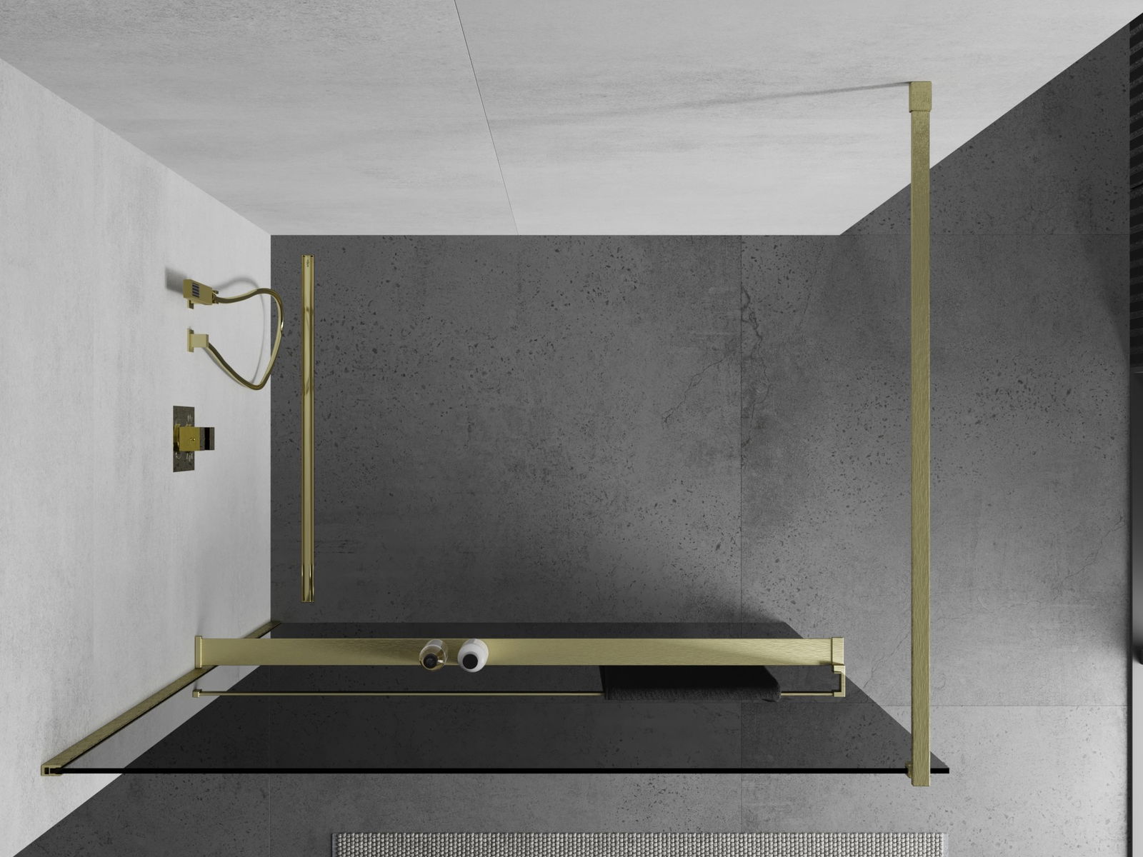 Mexen Kioto+ sprchová stěna s poličkou Walk-in 100 x 200 cm, grafit, zlatá kartáčovaná - 800-100-121-55-40