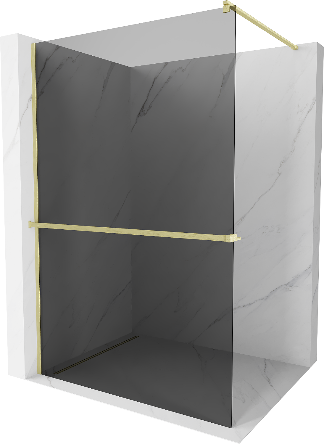 • Mexen Kioto+ sprchová stěna s poličkou Walk-in 100 x 200 cm, grafit, zlatá kartáčovaná - 800-100-121-55-40
