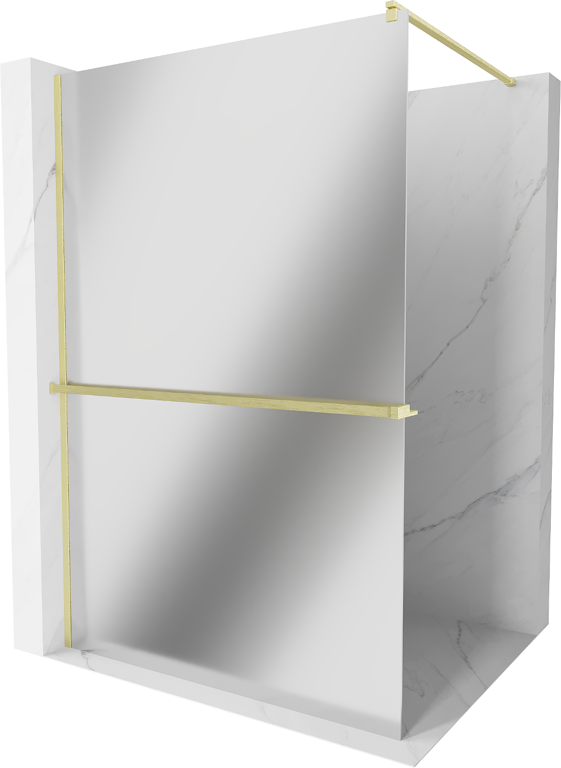 Mexen Kioto+ sprchová stěna s poličkou Walk-in 100 x 200 cm, zrcadlo, zlatá kartáčovaná - 800-100-121-55-50