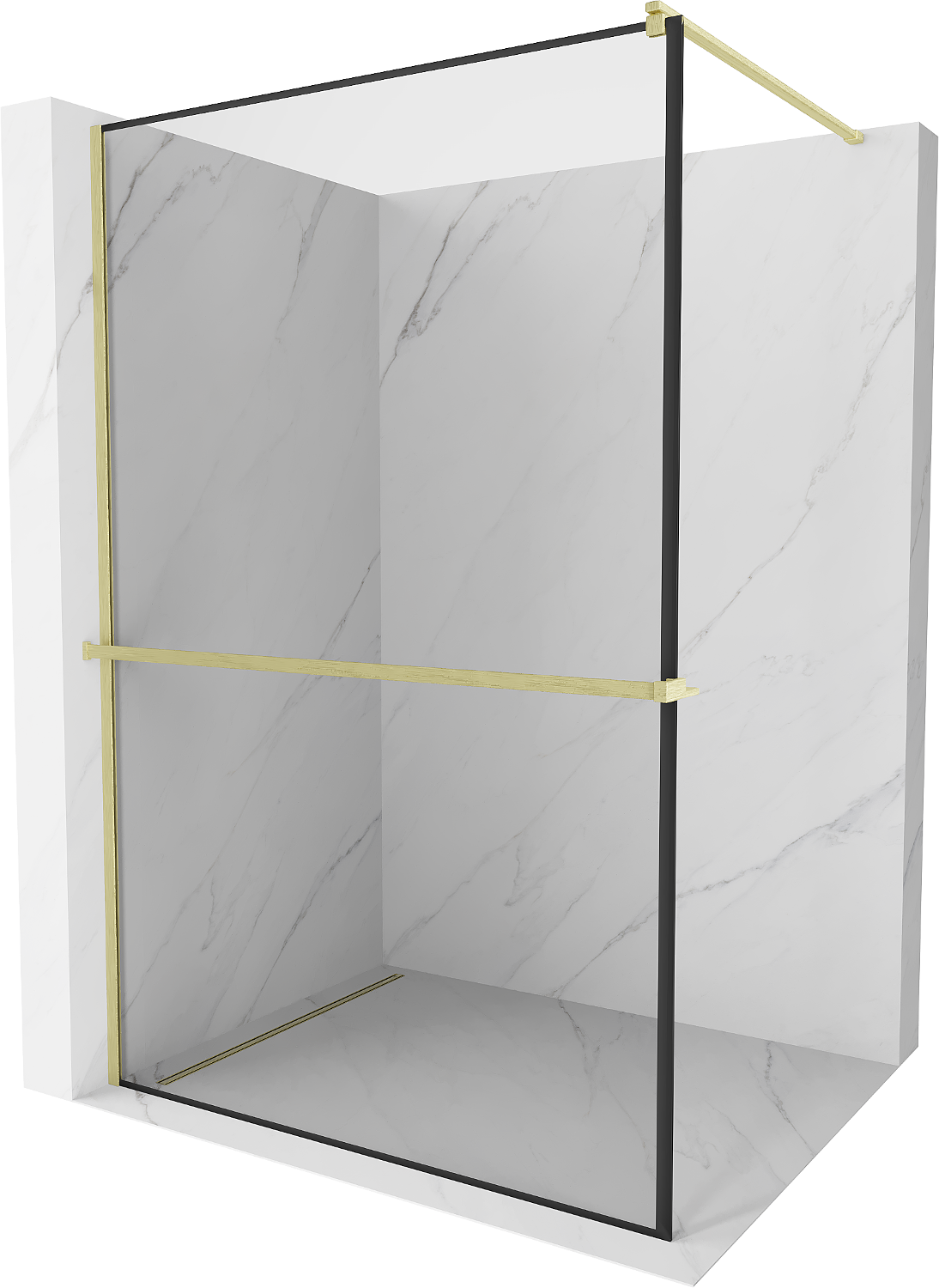Mexen Kioto+ sprchová stěna s poličkou Walk-in 80 x 200 cm, černý rám, zlatá kartáčovaná - 800-080-121-55-70