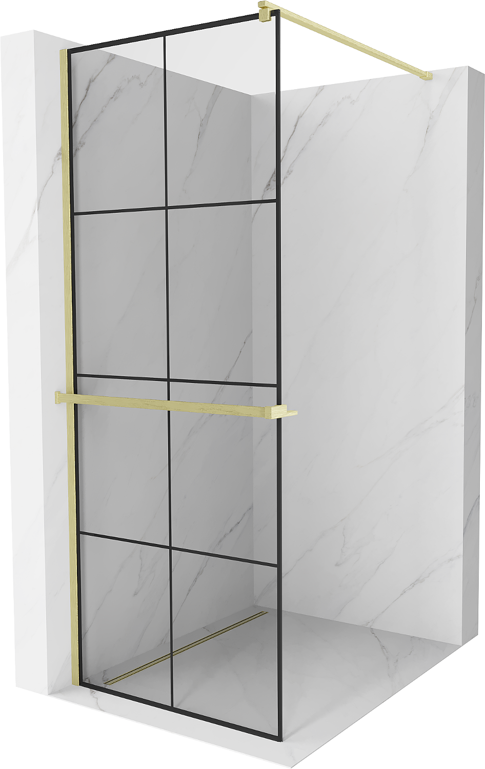 Mexen Kioto+ sprchová stěna s poličkou Walk-in 70 x 200 cm, černá mřížka, zlatá kartáčovaná - 800-070-121-55-77