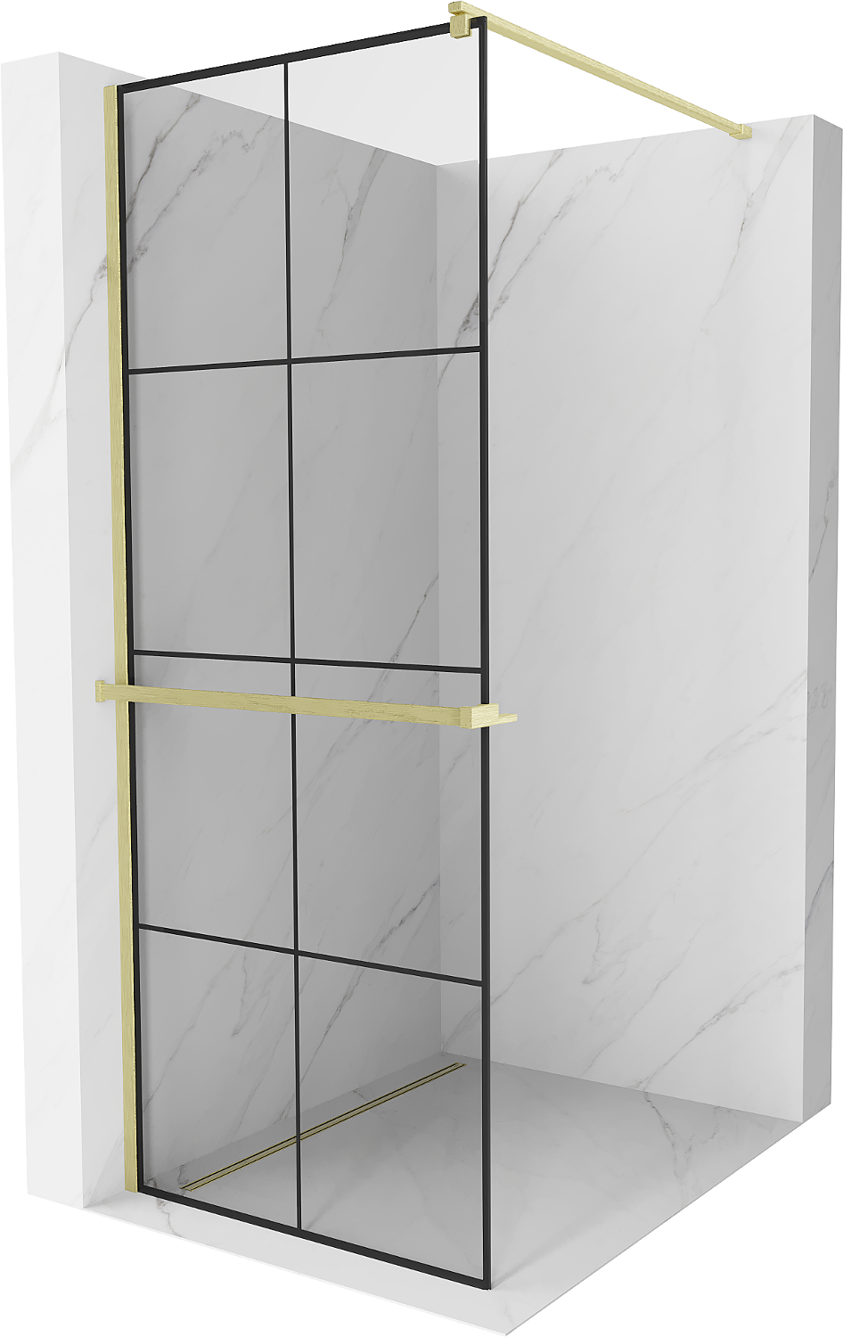 Mexen Kioto+ sprchová stěna s policí Walk-in 80 x 200 cm, černá mřížka, zlato kartáčovaná - 800-080-121-55-77