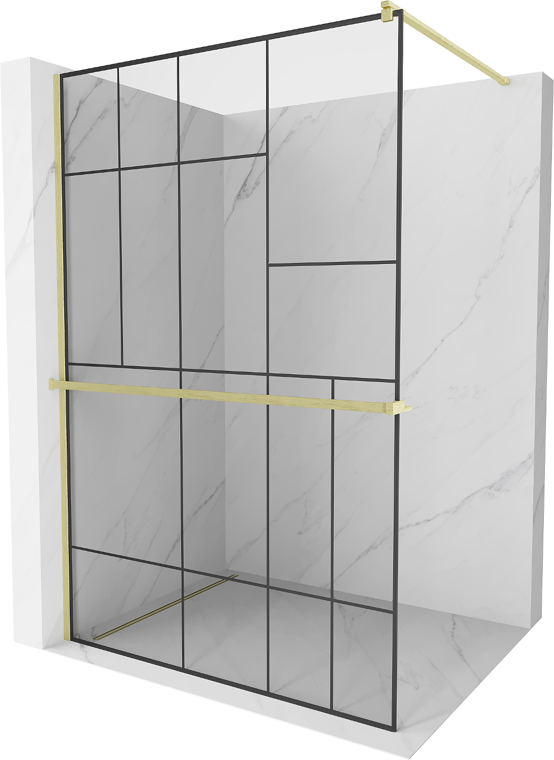 Mexen Kioto+ sprchová stěna s policí Walk-in 110 x 200 cm, černý vzor, zlatá kartáčovaná - 800-110-121-55-78