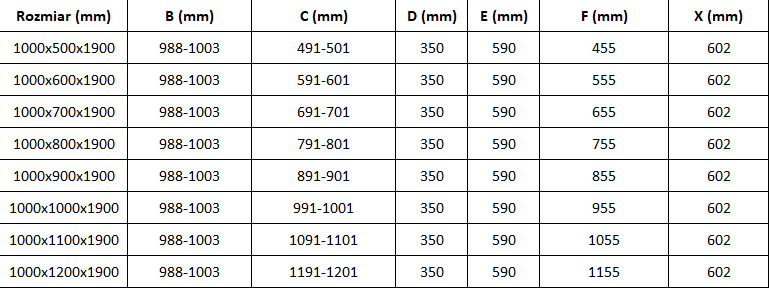 Rozměr: 100x80 cm (dveře 100 cm, stěna 80 cm)