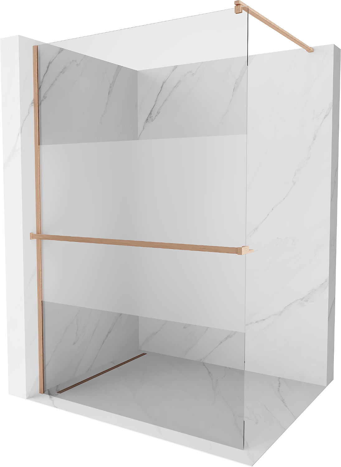 Mexen Kioto+ sprchová zástěna s policí Walk-in 90 x 200 cm, průhledná/mlha, kartáčovaná měď - 800-090-121-65-35