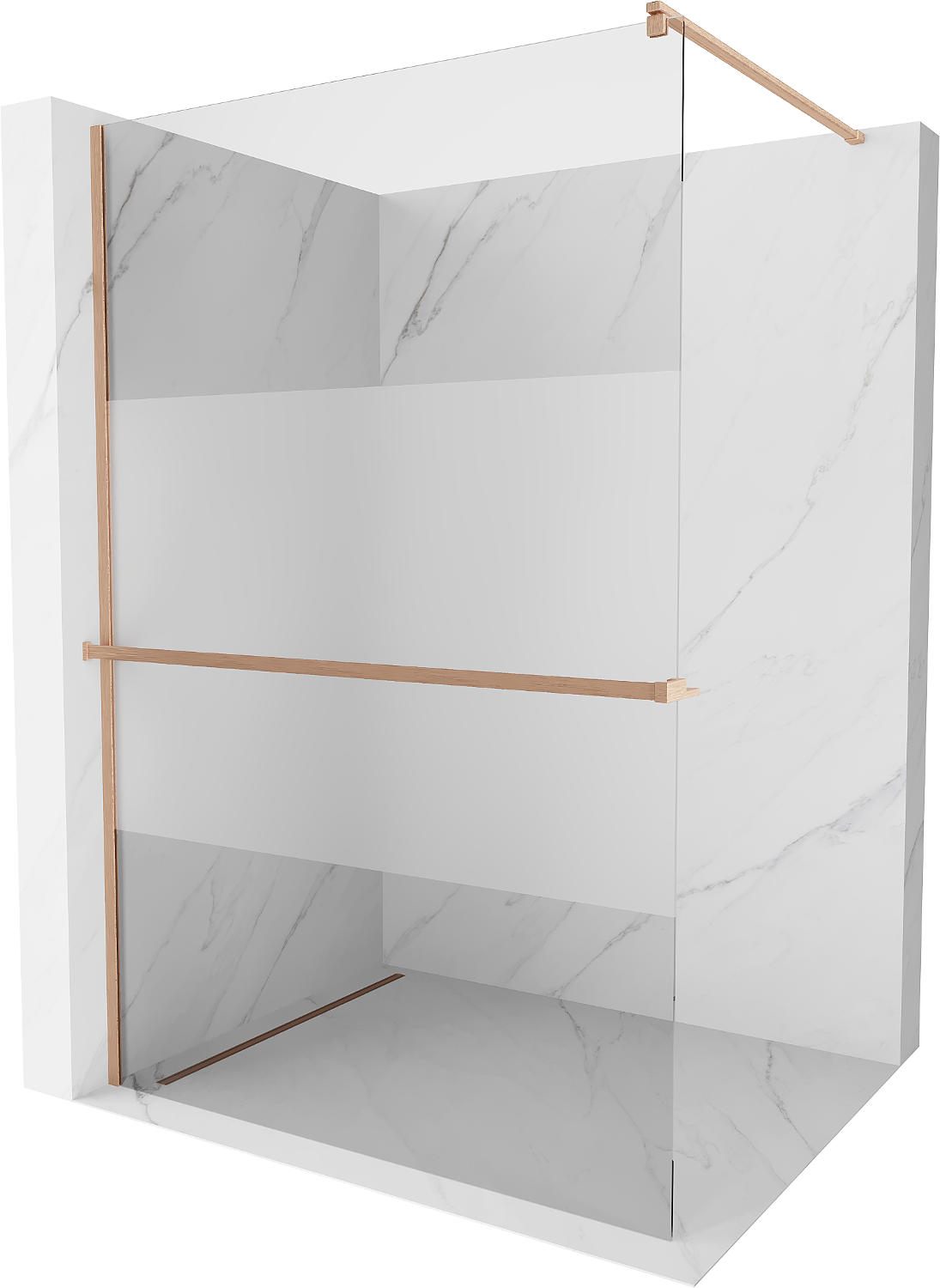 Mexen Kioto+ sprchová stěna s policí Walk-in 140 x 200 cm, průhledná/matná, kartáčovaná měď - 800-140-121-65-35