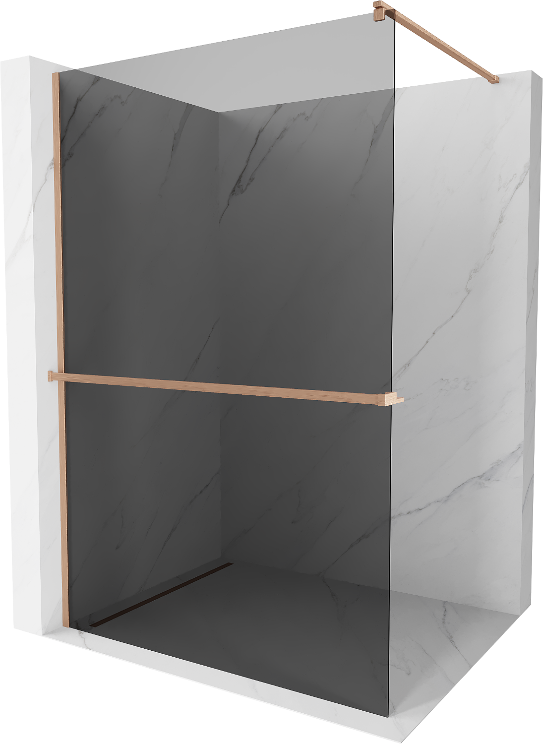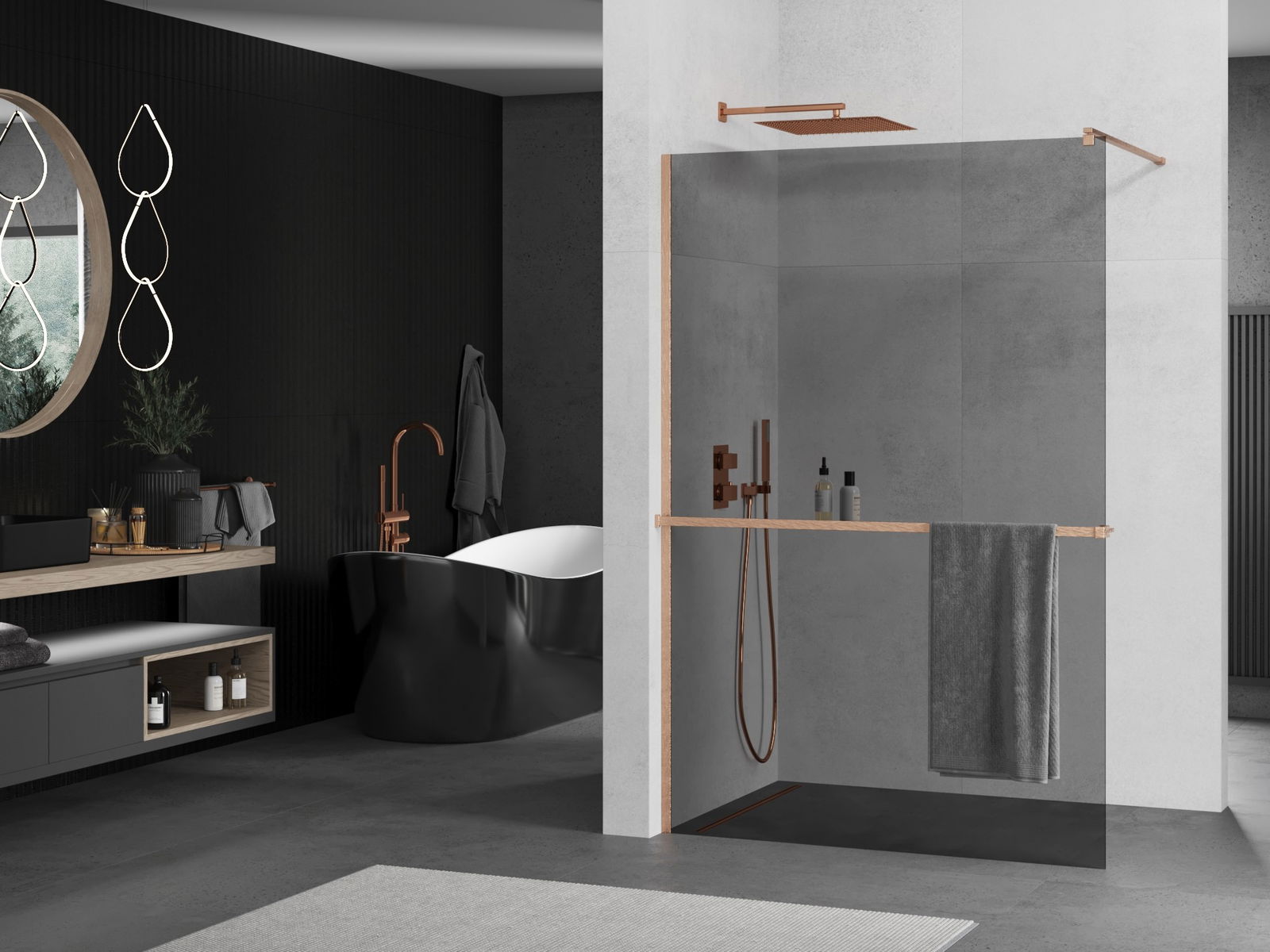 Mexen Kioto+ sprchová stěna s policí Walk-in 70 x 200 cm, grafit, kartáčovaná měď - 800-070-121-65-40