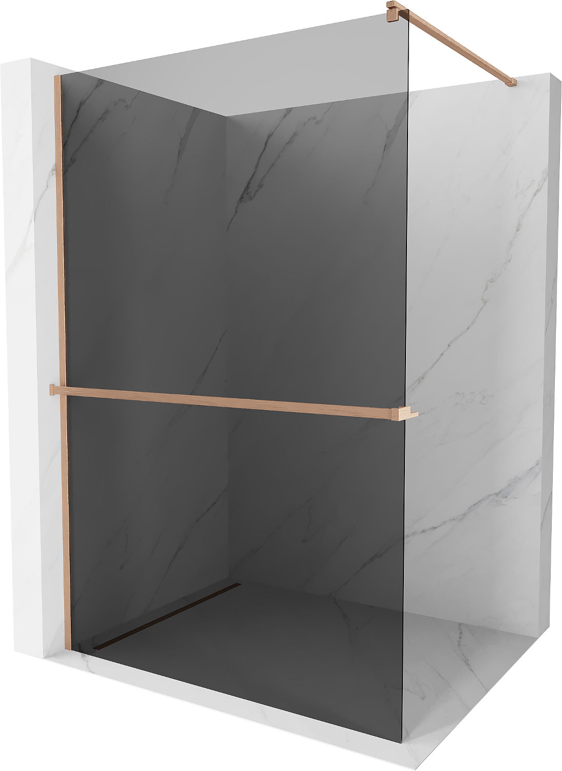 Mexen Kioto+ sprchová stěna s policí Walk-in 100 x 200 cm, grafit, kartáčovaná měď - 800-100-121-65-40