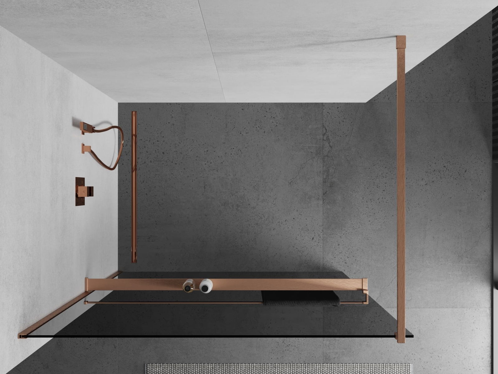 Mexen Kioto+ sprchová stěna s poličkou Walk-in 120 x 200 cm, grafit, kartáčovaná měď - 800-120-121-65-40