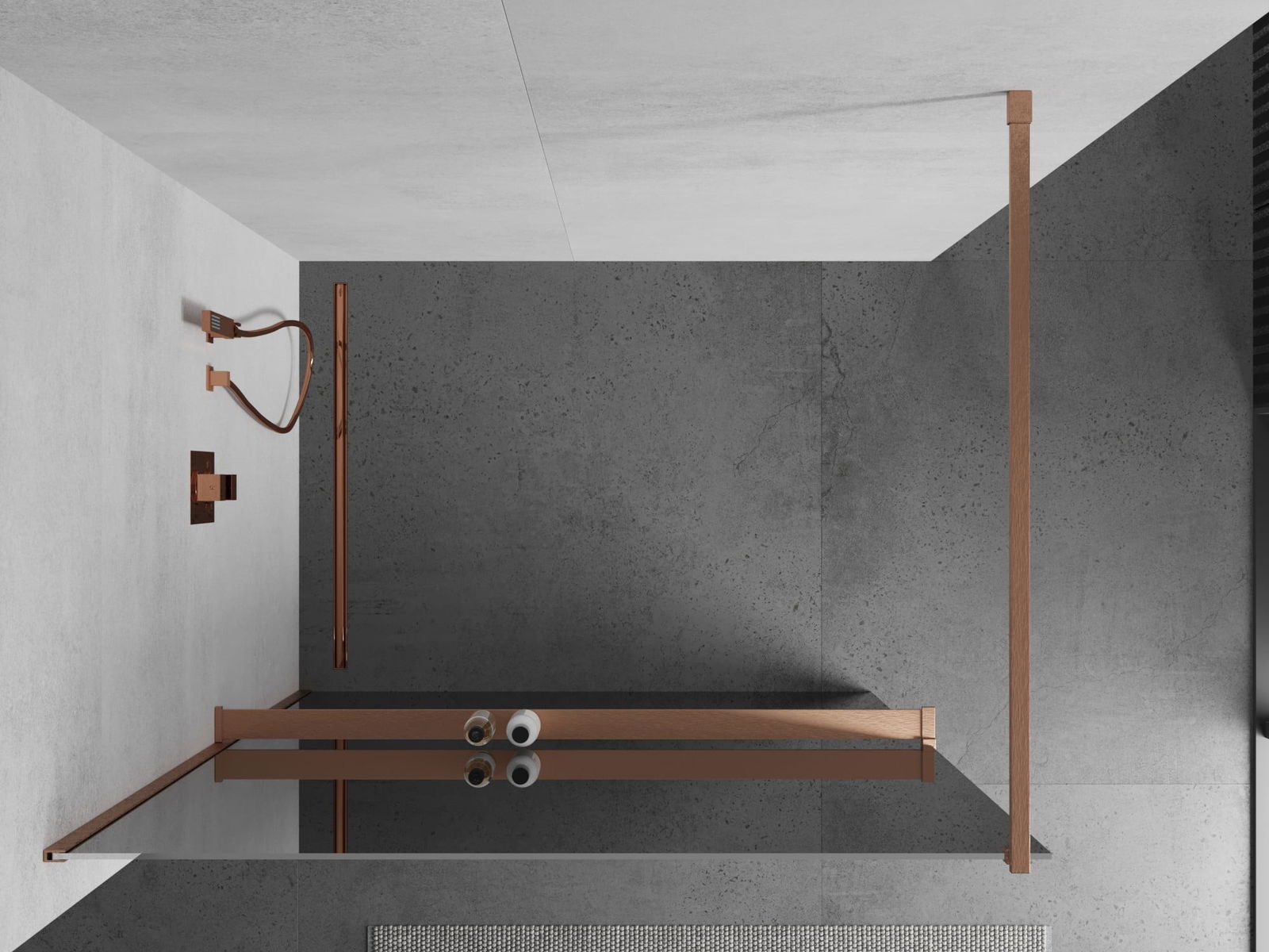Mexen Kioto+ sprchová zástěna s policí Walk-in 80 x 200 cm, zrcadlo, kartáčovaná měď - 800-080-121-65-50