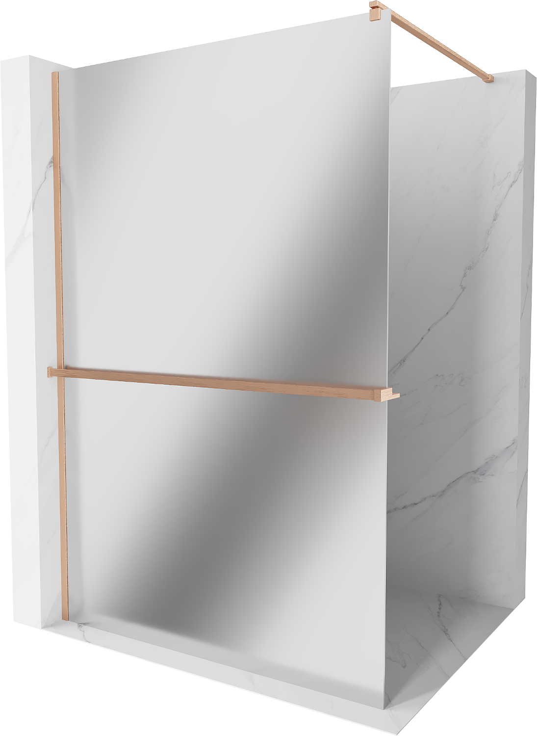 Mexen Kioto+ sprchová stěna s poličkou Walk-in 90 x 200 cm, zrcadlo, kartáčovaná měď - 800-090-121-65-50