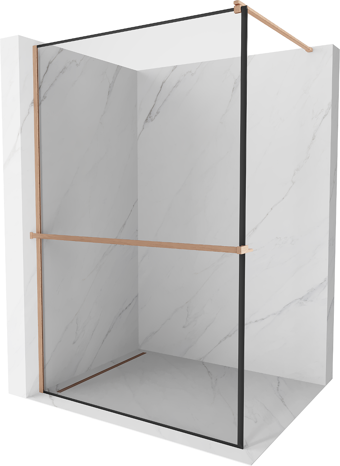 Mexen Kioto+ sprchová stěna s poličkou Walk-in 110 x 200 cm, černý rám, kartáčovaná měď - 800-110-121-65-70