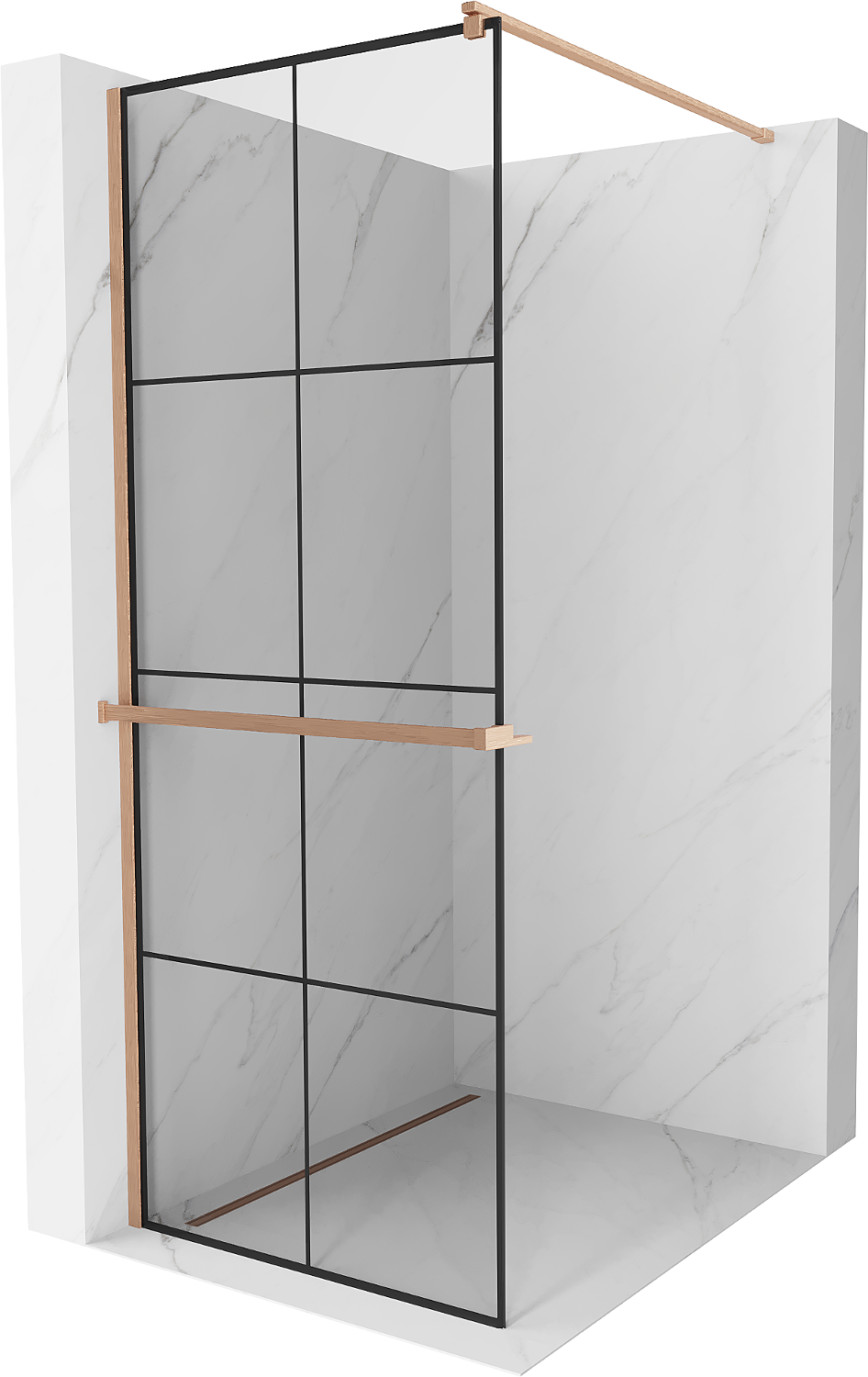 Mexen Kioto+ sprchová stěna s poličkou Walk-in 70 x 200 cm, černá mřížka, kartáčovaná měď - 800-070-121-65-77