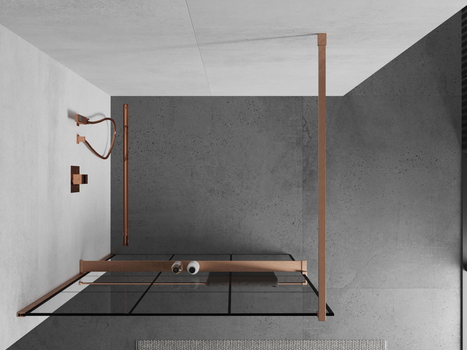 Mexen Kioto+ sprchová stěna s policí Walk-in 120 x 200 cm, černá mřížka, kartáčovaná měď - 800-120-121-65-77