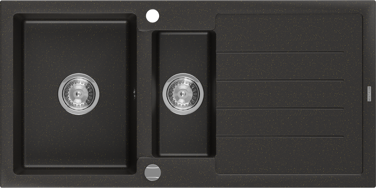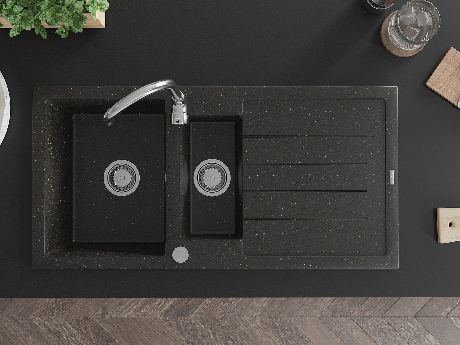 Mexen Andres granitový dřez 1,5-komorový s odkapávačem 1000 x 500 mm, černý/zlatý metalik, sifon chrom - 6515101510-75
