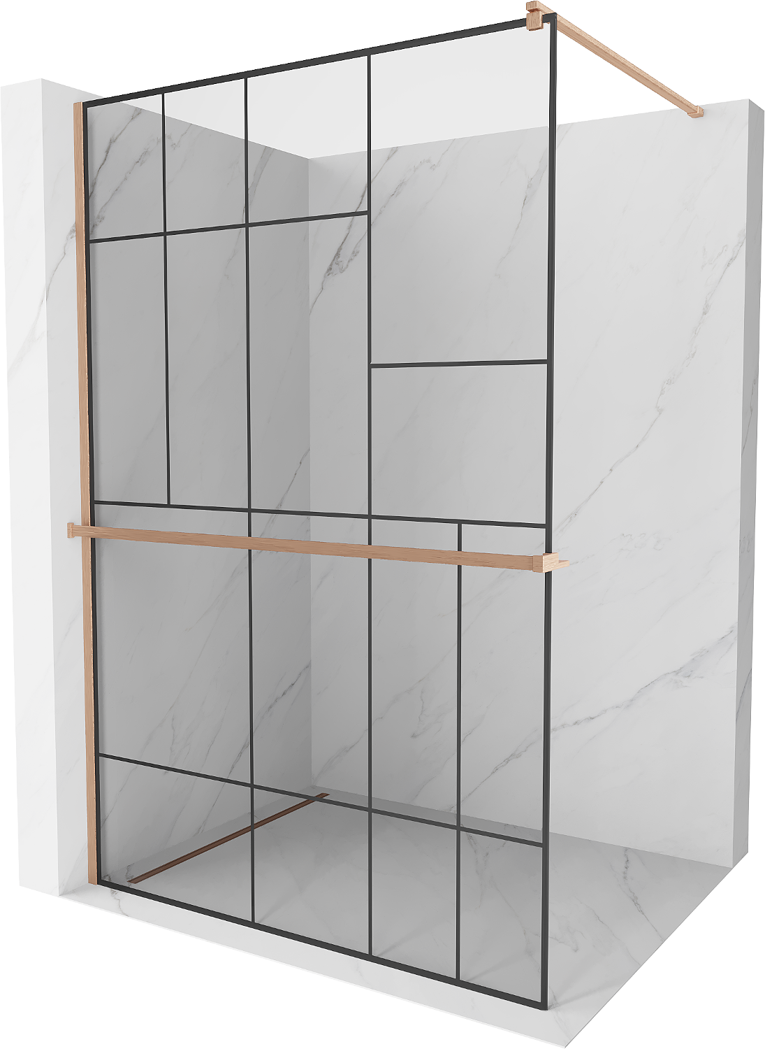 Mexen Kioto+ sprchová stěna s policí Walk-in 80 x 200 cm, černý vzor, kartáčovaná měď - 800-080-121-65-78