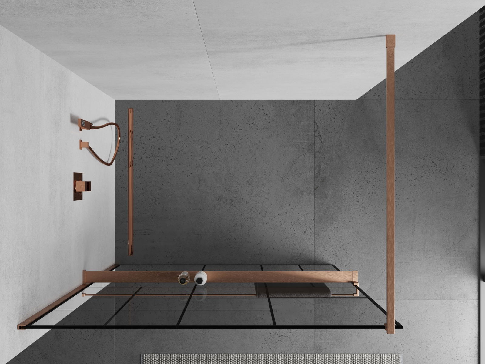 Mexen Kioto+ sprchová stěna s policí Walk-in 120 x 200 cm, černý vzor, kartáčovaná měď - 800-120-121-65-78