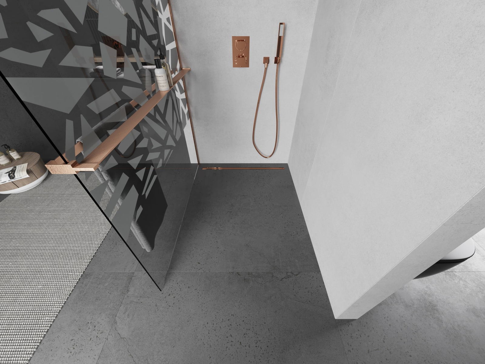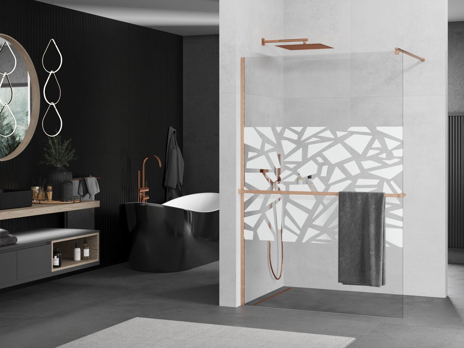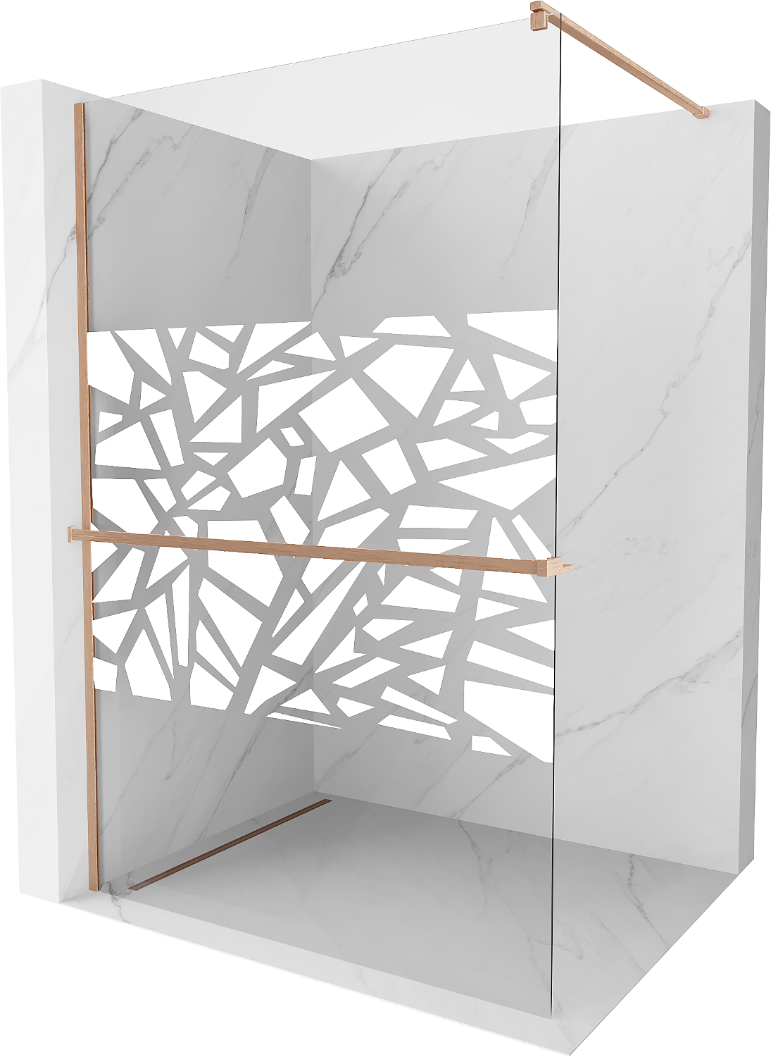 Mexen Kioto+ sprchová stěna s policí Walk-in 100 x 200 cm, bílý vzor, kartáčovaná měď - 800-100-121-65-85