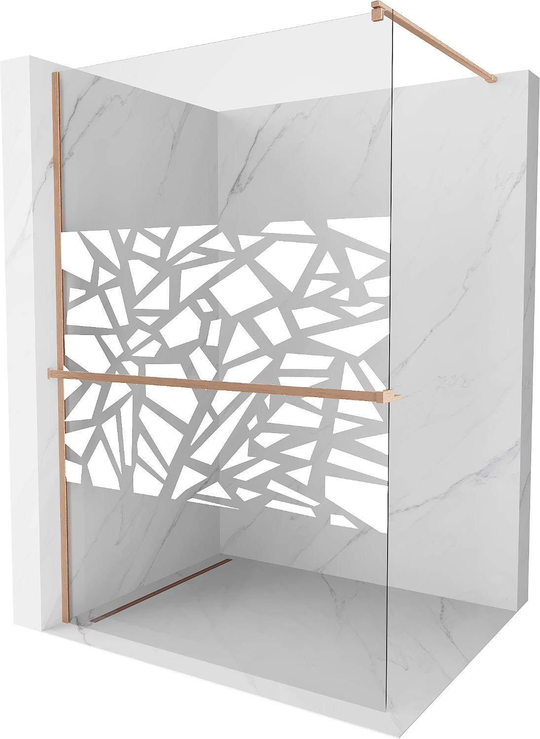Mexen Kioto+ sprchová stěna s poličkou Walk-in 130 x 200 cm, bílý vzor, kartáčovaná měď - 800-130-121-65-85