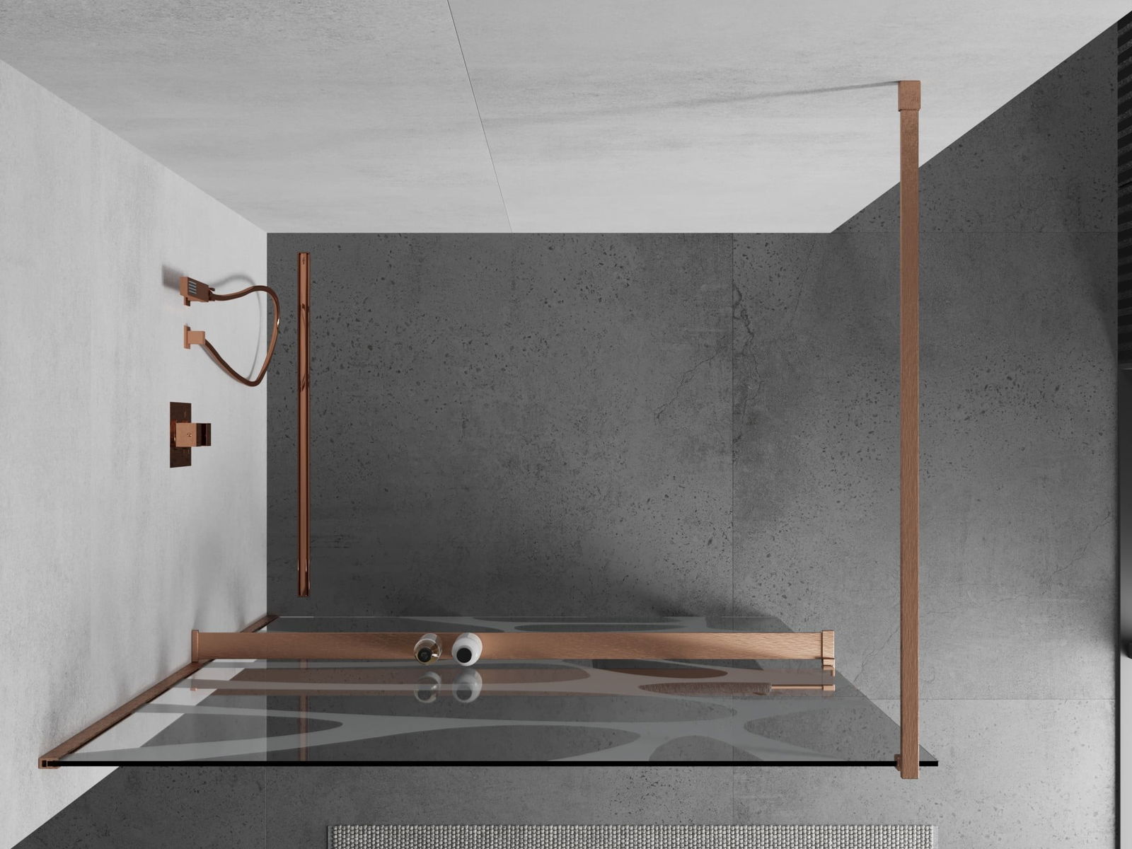 Mexen Kioto+ sprchová zástěna s poličkou Walk-in 110 x 200 cm, bílá vlna, kartáčovaná měď - 800-110-121-65-97