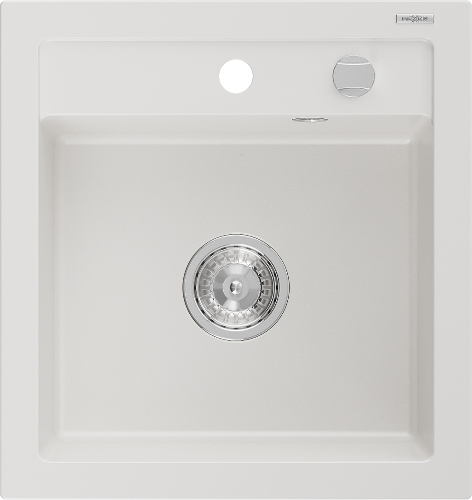 Mexen Vito granitový dřez 1-komorový 520 x 490 mm, bílý, sifon chrom - 6503521000-20
