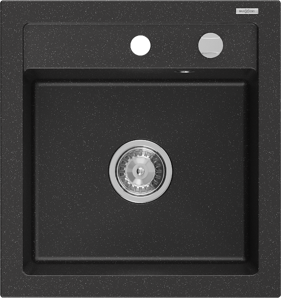 Mexen Vito granitový dřez 1-komorový 520 x 490 mm, černý/stříbrný metalik, sifon chrom - 6503521000-73