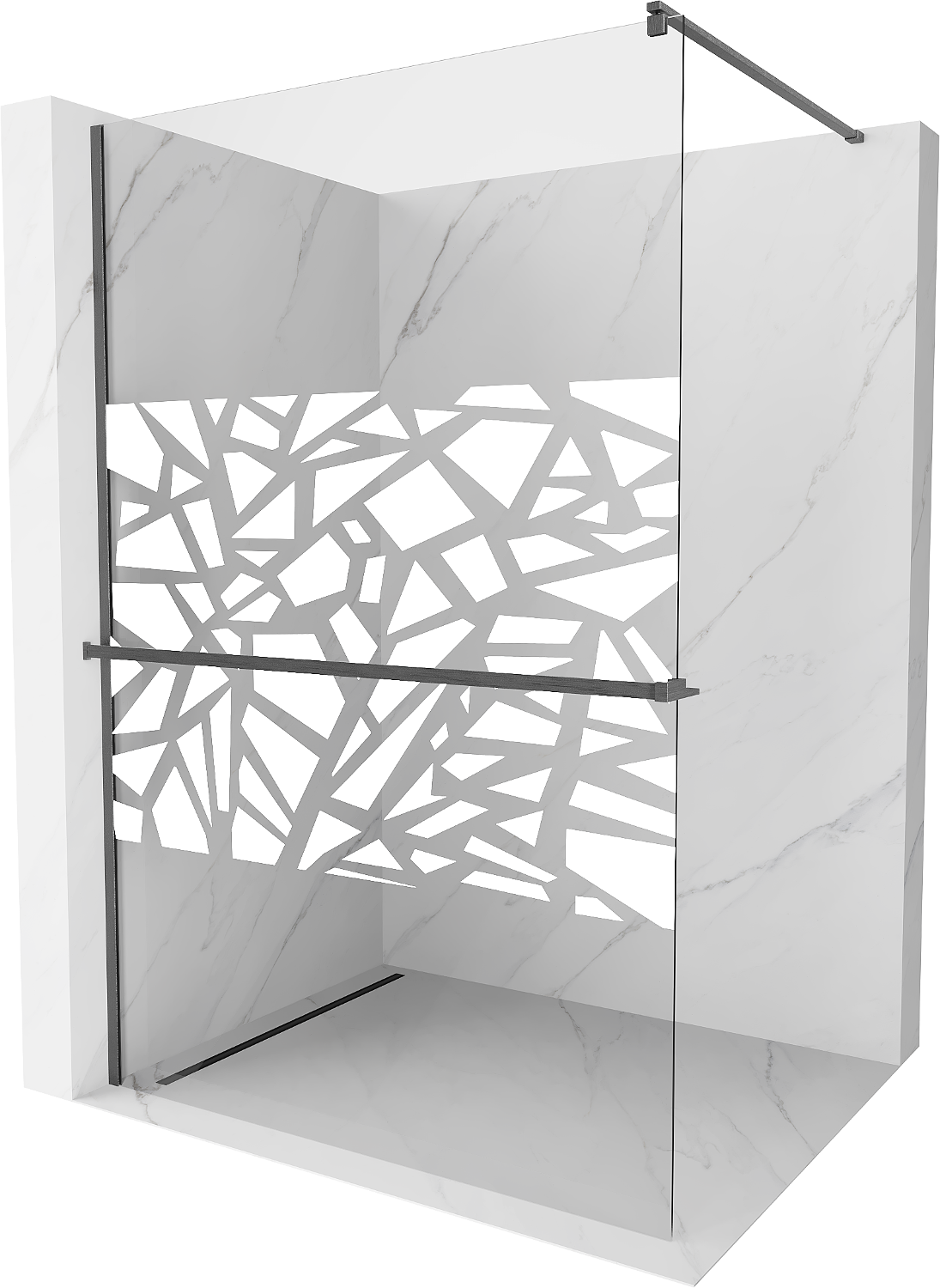 Mexen Kioto+ sprchová stěna s policí Walk-in 100 x 200 cm, bílý vzor, gun gray kartáčovaný - 800-100-121-66-85