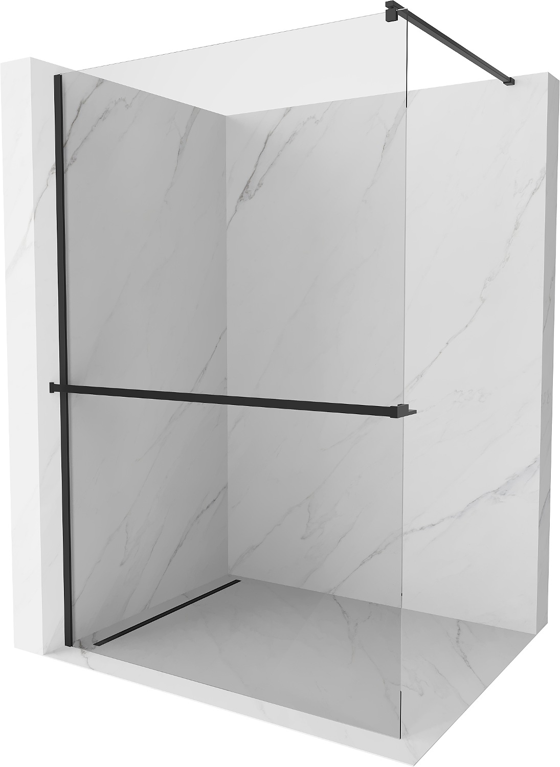 Mexen Kioto+ sprchová stěna s poličkou Walk-in 125 x 200 cm, transparentní, černá - 800-125-121-70-00