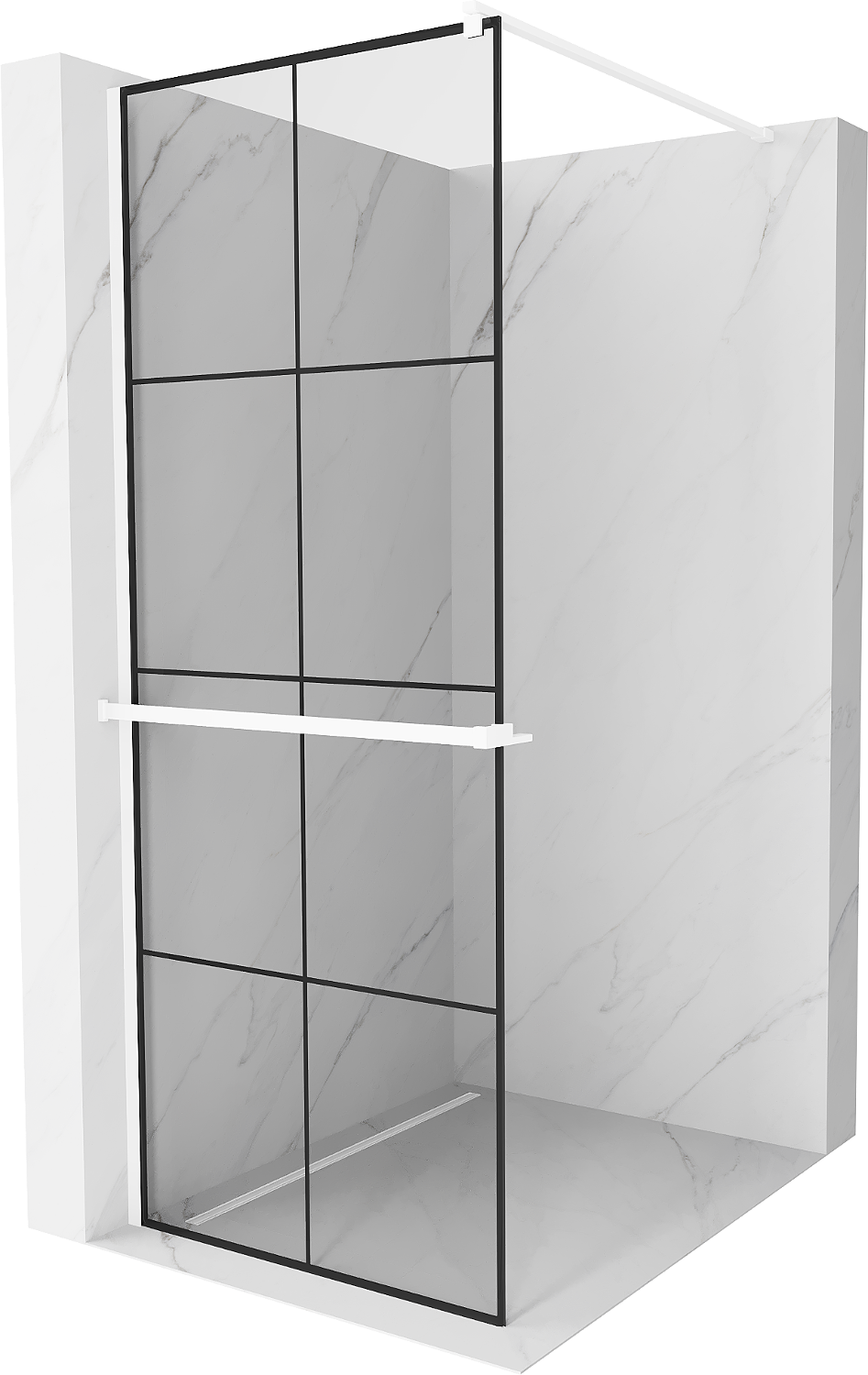 Mexen Kioto+ sprchová stěna s policí Walk-in 70 x 200 cm, černá mřížka, bílá - 800-070-121-20-77