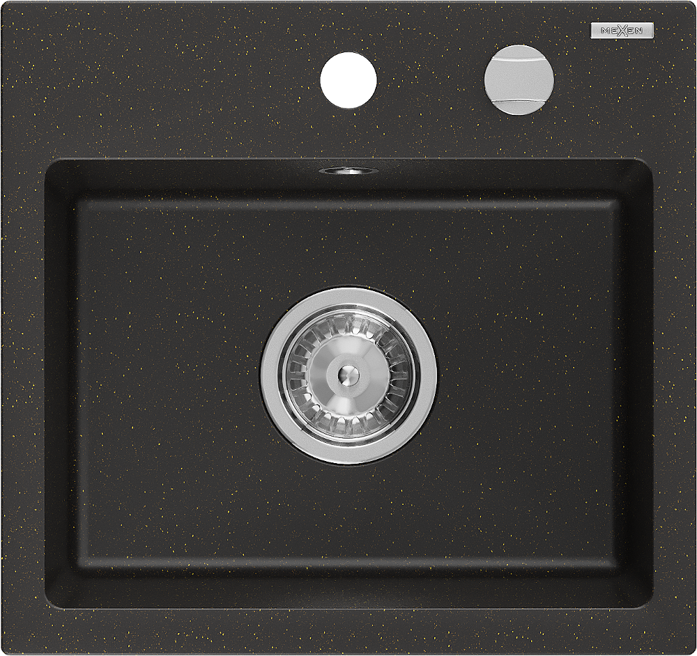 Mexen Milo granitový dřez 1-komorový 435 x 410 mm, černý/zlatý metalik, sifon chrom - 6505441000-75