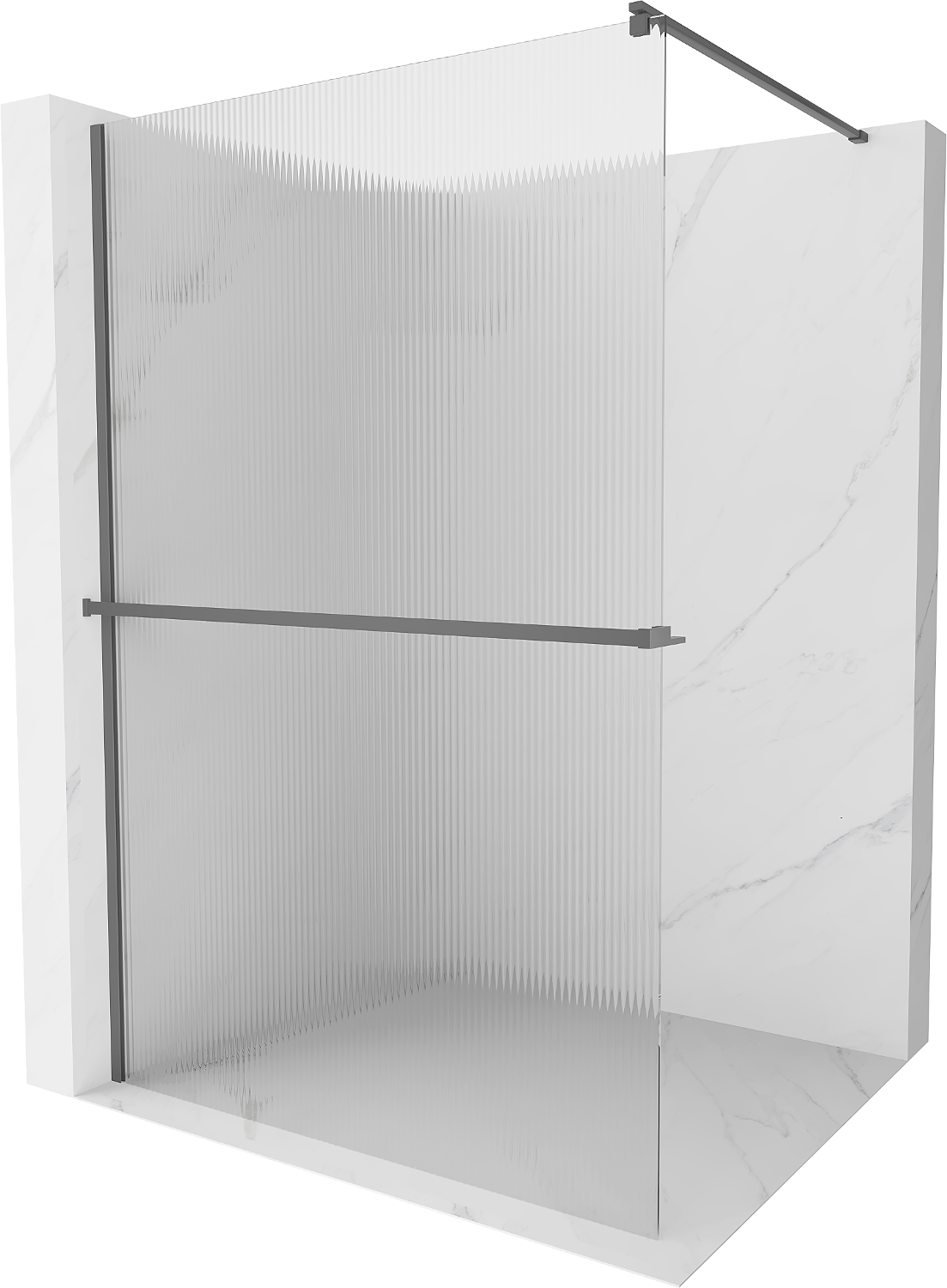 Mexen Kioto+ Sprchová zástěna s poličkou Walk-in 140 x 200 cm, proužky, gun metal - 800-140-121-95-09