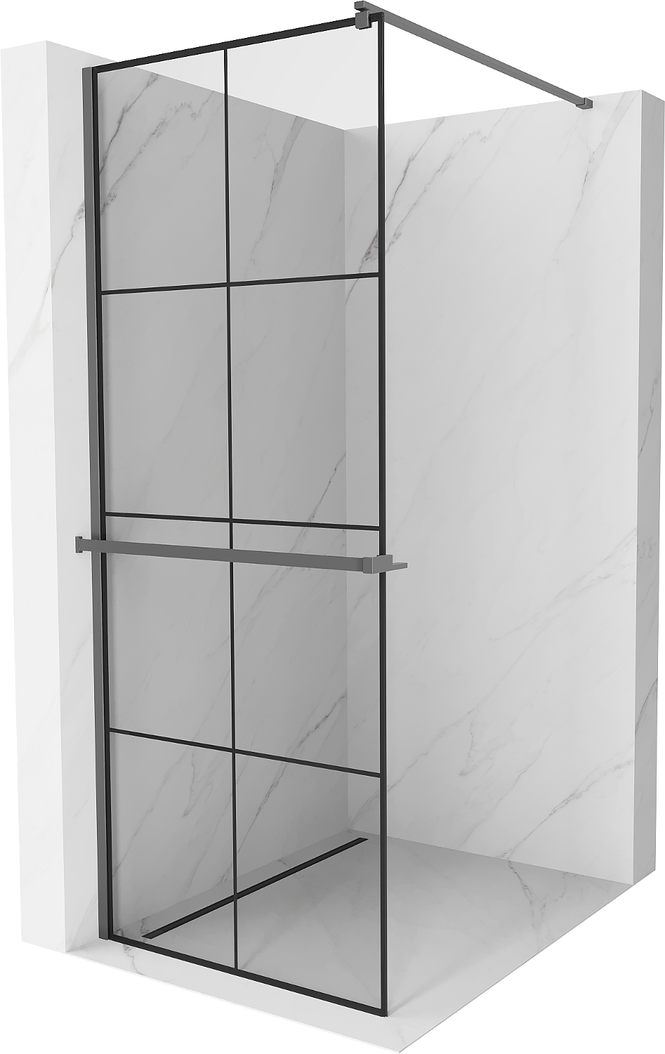 Mexen Kioto+ sprchová stěna s policí Walk-in 90 x 200 cm, černá mřížka, gun metal - 800-090-121-95-77