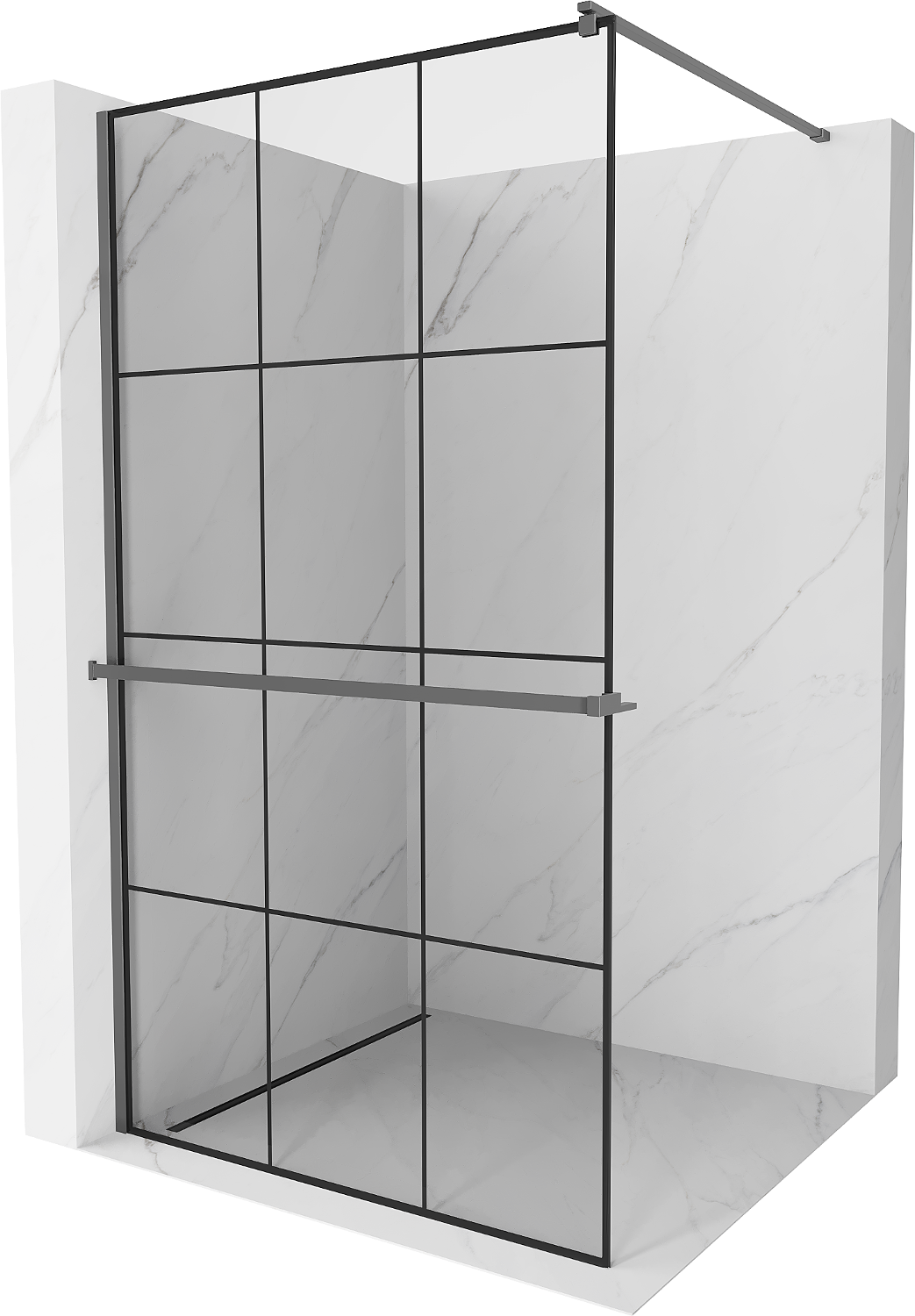 Mexen Kioto+ sprchová stěna s policí Walk-in 120 x 200 cm, černá mřížka, gun metal - 800-120-121-95-77