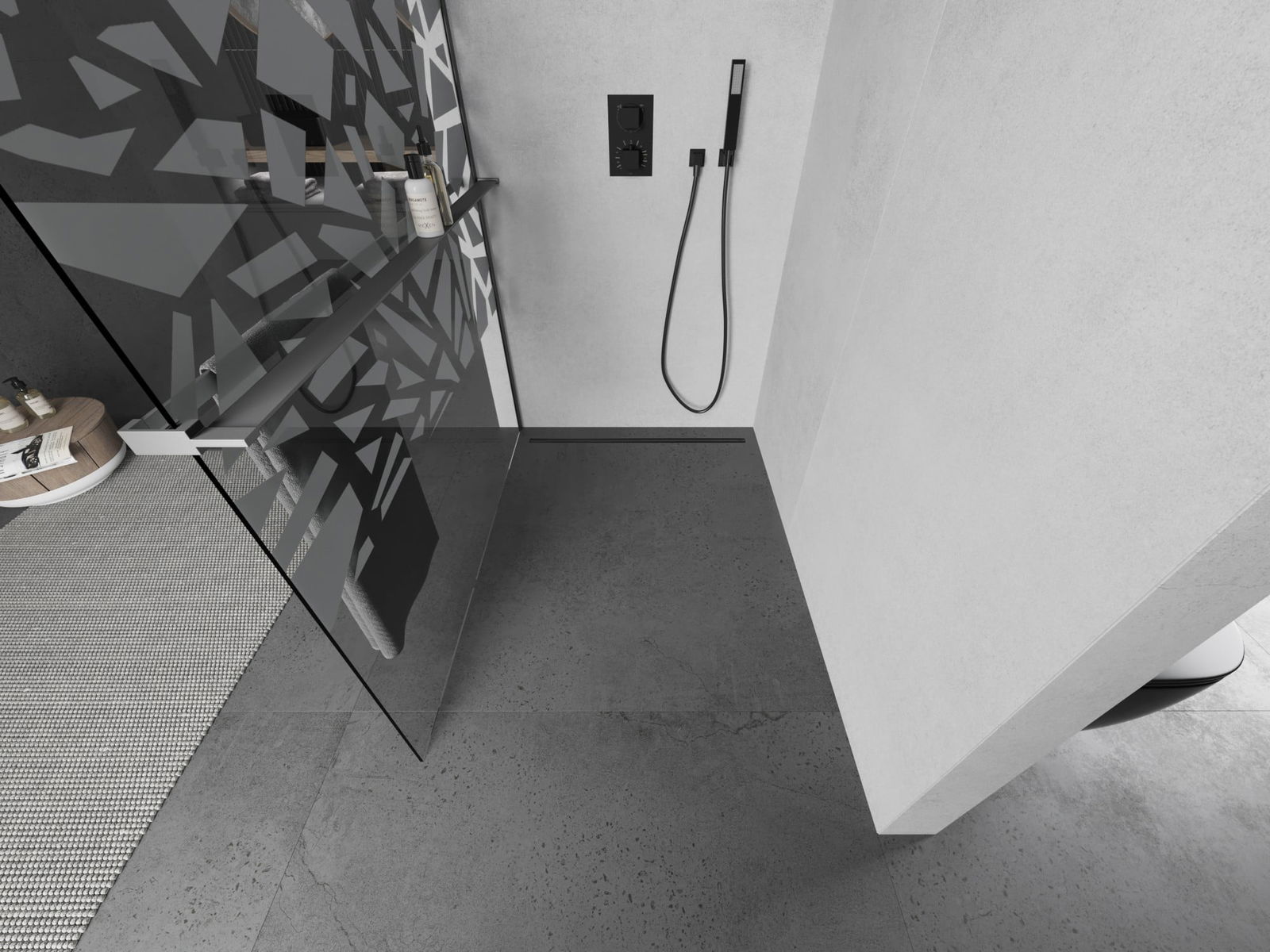 Produkt lze podle potřeby namontovat jak na sprchovou vaničku, tak přímo na podlahu. Univerzální způsob montáže umožňuje přizpůsobení produktu různým typům koupelen a konfiguracím prostor.