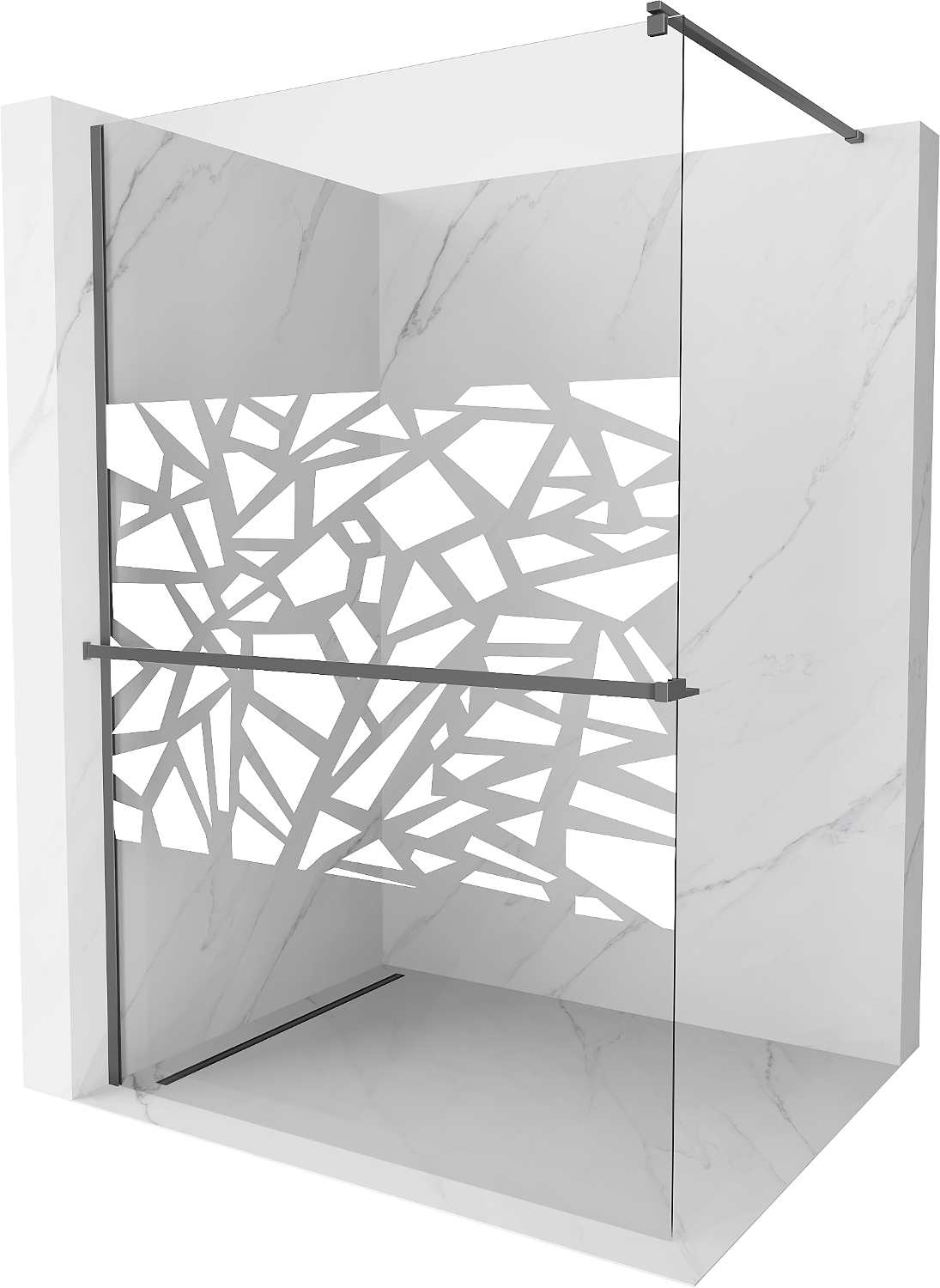 Mexen Kioto+ sprchová zástěna s policí Walk-in 70 x 200 cm, bílý vzor, gun metal - 800-070-121-95-85