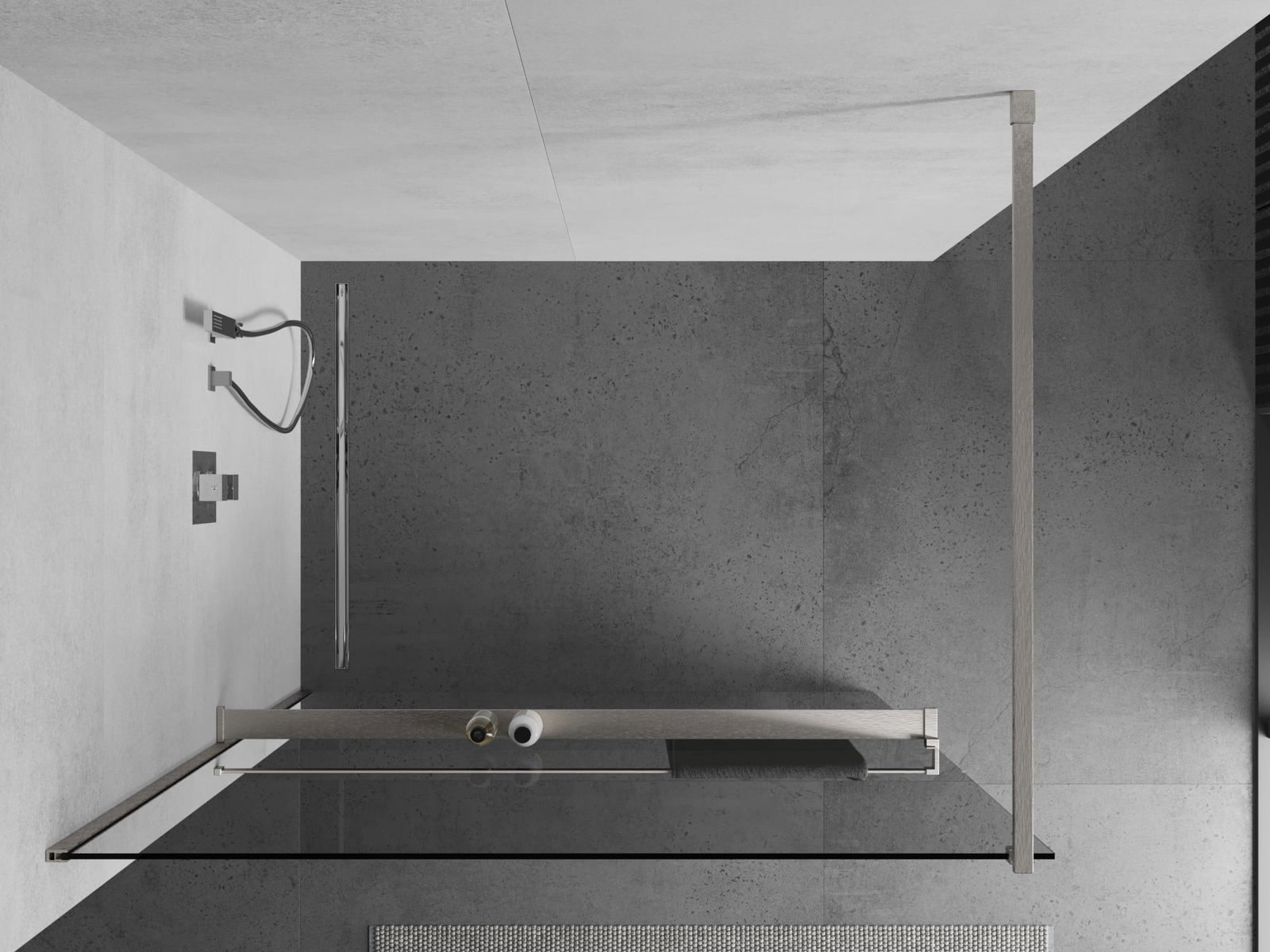 Mexen Kioto+ sprchová stěna s policí Walk-in 125 x 200 cm, transparentní, kartáčovaný nikl - 800-125-121-97-00