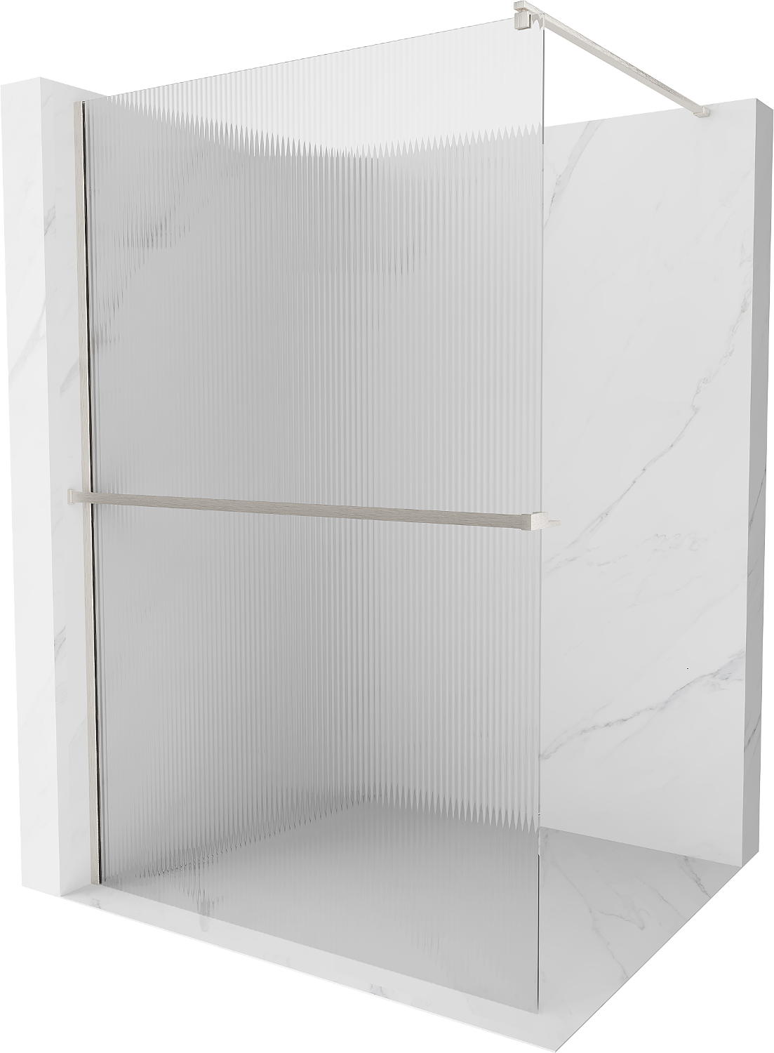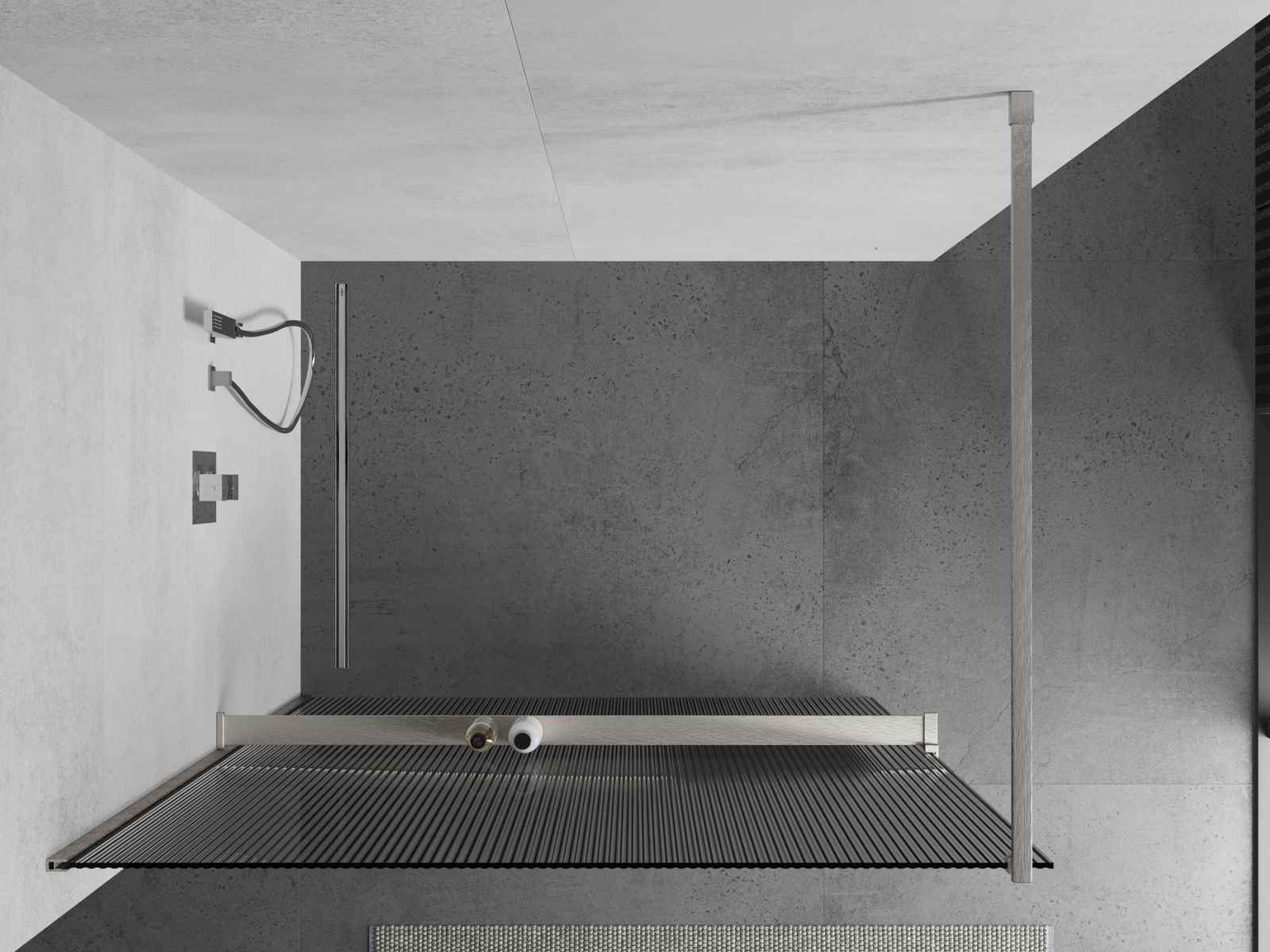 Mexen Kioto+ sprchová stěna s poličkou Walk-in 90 x 200 cm, pruhy, kartáčovaný nikl - 800-090-121-97-09