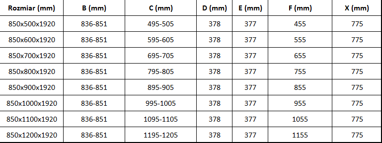 Rozměr: 85x120 cm (dveře 85 cm, stěna 120 cm)